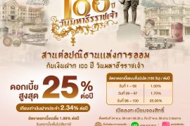 การคลังNovember 21, 2025<November 21, 2025 ออมสิน ออกเงินฝากส่งเสริมการออม น้อมรำลึกในพระมหากรุณาธิคุณ รัชกาลที่ 6 “เงินฝาก 100 ปี วันมหาธีรราชเจ้า” ฝาก 100 วัน ดอกเบี้ย Step up สูงสุด 25% ต่อปี จองสิทธิ์ 24 พ.ย. นี้