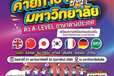 เปลว สีเงินFebruary 3, 2026<February 3, 2026 ศิลปศาสตร์ ม.รังสิต เปิดค่าย “ติวเข้ม A-LEVEL ภาษาต่างประเทศ”