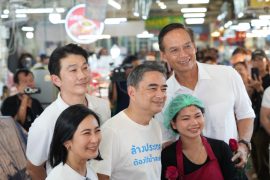 เลือกตั้ง 2569January 29, 2026<January 29, 2026 “อภิสิทธิ์” ยกทัพใหญ่ช่วย “ออม-อภิมุข” หาเสียงตลาดเสรี มั่นใจคว้าชัย กทม.หลายเขต-เตือนเลือกน้ำเงินระวังส้มครองกรุงฯ