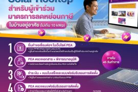 พลังงานMarch 27, 2026<March 27, 2026 PEA แนะนำขั้นตอนขออนุญาตเชื่อมต่อ Solar Rooftop สำหรับผู้เข้าร่วมมาตรการลดหย่อนภาษีในบ้านอยู่อาศัย ขนาดติดตั้งไม่เกิน 10 kWp