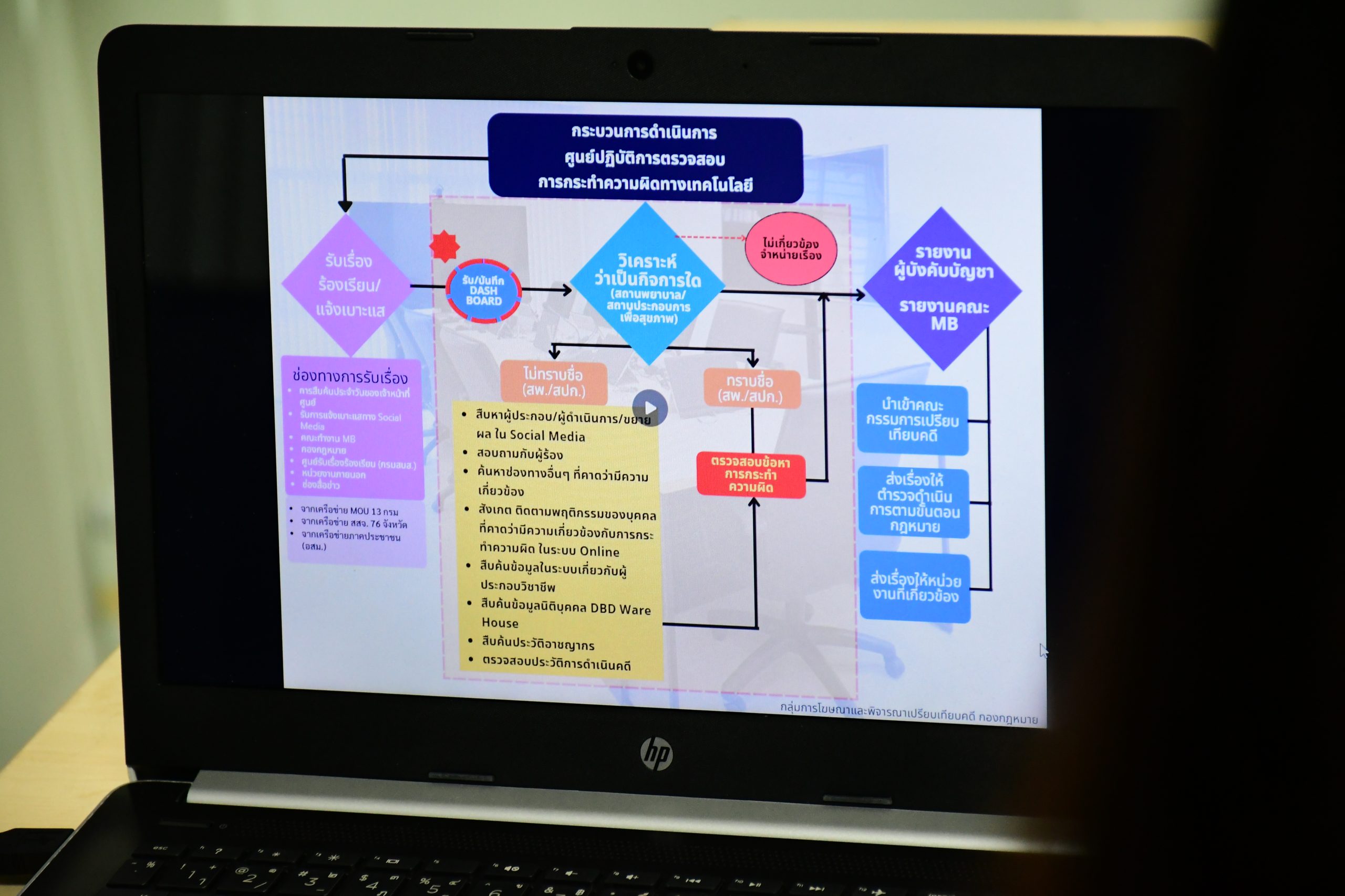 ด้านนายแพทย์สุระ กล่าวว่า ศูนย์ปฏิบัติการตรวจสอบการกระทำความผิดทางเทคโนโลยี ตั้งอยู่ที่ชั้น 6 อาคารกรมสนับสนุนบริการสุขภาพ มีพนักงานเจ้าหน้าที่กองกฎหมาย เป็นผู้ดำเนินการสืบค้น ตรวจสอบการเผยแพร่ข้อมูลหรือโฆษณาของสถานพยาบาลและสถานประกอบการเพื่อสุขภาพ หรือที่ได้รับเบาะแสจากภาคีเครือข่ายและประชาชนผ่านช่องทางออนไลน์ เพื่อเฝ้าระวังการกระทำผิดกฎหมายในลักษณะของการโฆษณาโดยไม่ได้รับอนุญาตหรือโอ้อวดเกินจริง ที่อาจจะส่งผลกระทบหรือความเสียหายต่อผู้บริโภค