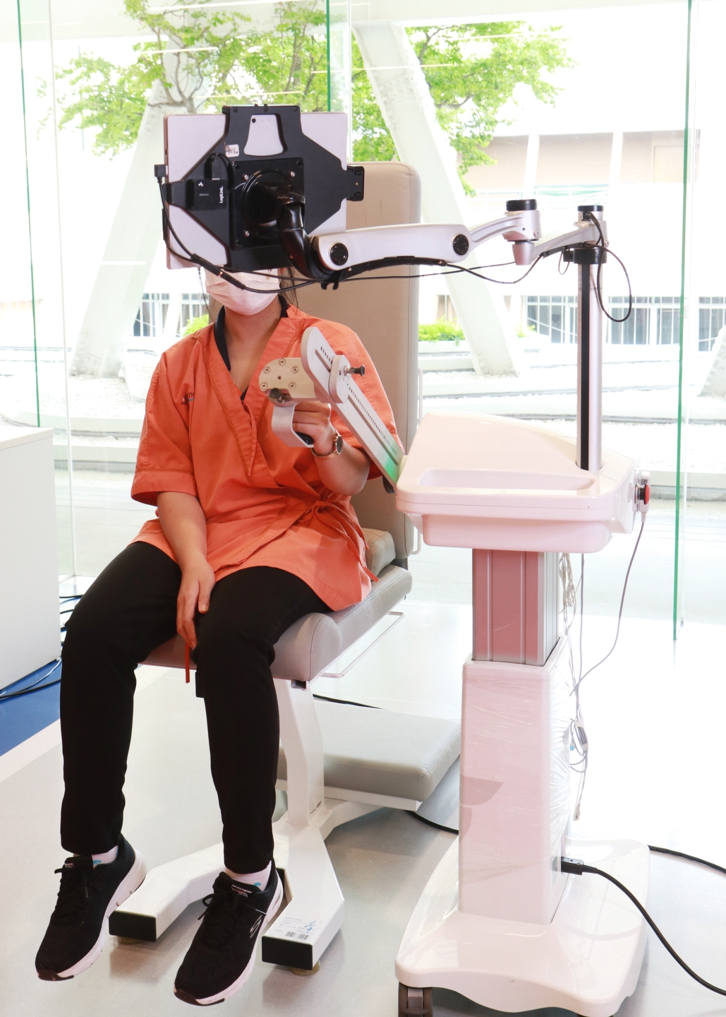Armeo Spring – หุ่นยนต์กายภาพบำบัดสำหรับผู้ป่วยโรคหลอดเลือดสมองที่มีปัญหาแขนอ่อนแรง เหมาะสำหรับผู้ป่วยที่เริ่มขยับกล้ามเนื้อแขนได้ แต่แรงกล้ามเนื้อและการควบคุมการเคลื่อนไหวยังไม่ดีพอสำหรับการใช้งานในชีวิตประจำวัน โดยหุ่นยนต์นี้ช่วยทำให้การฝึกการควบคุมและออกแรงกล้ามเนื้อทำได้อย่างมีประสิทธิภาพมากขึ้น โดยจะรายงานผลผ่านหน้าจอเพื่อให้ผู้ป่วยได้เรียนรู้และปรับการเคลื่อนไหวในรูปแบบที่ถูกต้อง