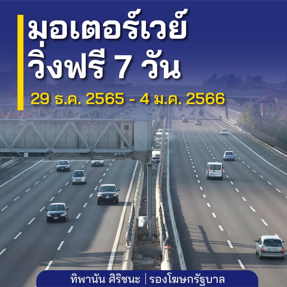 12. มาตรการเปิดให้วิ่งฟรีทางหลวงพิเศษระหว่างเมือง หรือมอเตอร์เวย์ 7 วัน ตั้งแต่เวลา 0.01 น. ของวันที่ 29 ธันวาคม 2565 จนถึงเวลา 24.00 น. ของวันที่ 4 มกราคม 2566