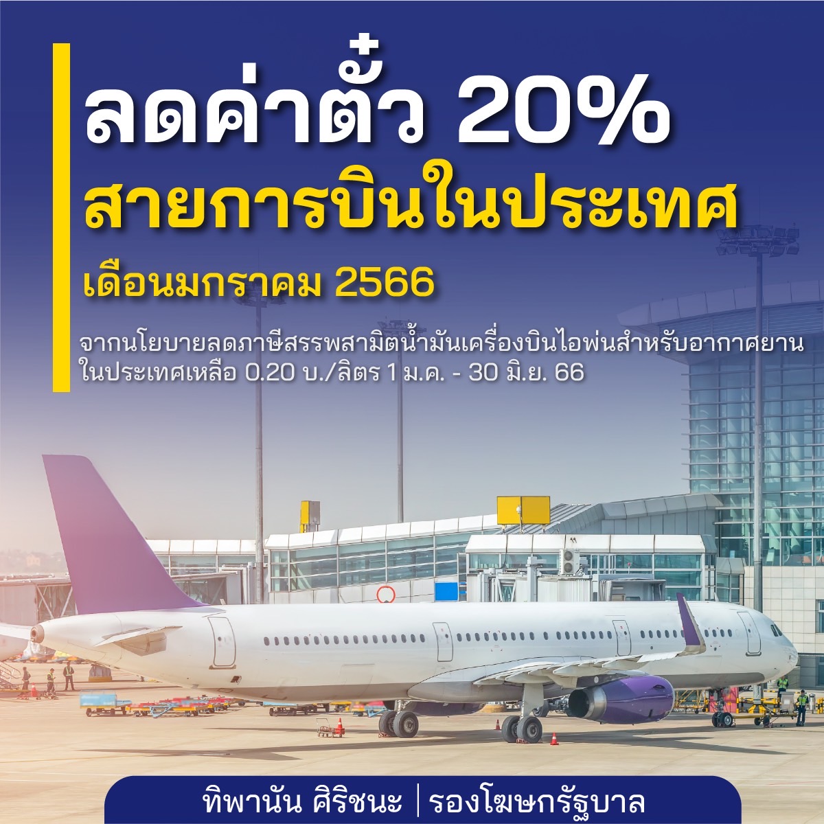4. สายการบินลดค่าเครื่องบินภายในประเทศลง 20% จากมาตรการปรับลดอัตราภาษีสรรพสามิต สำหรับน้ำมันเชื้อเพลิงเครื่องบินไอพ่นที่นำไปใช้เป็นเชื้อเพลิงสำหรับอากาศยานภายในประเทศ โดยลดอัตราภาษีตามปริมาณของน้ำมันเชื้อเพลิง สำหรับเครื่องบินไอพ่นที่ใช้บินในประเทศ จากลิตรละ 4.726 บาท เหลือลิตรละ 0.20 บาท มีผลบังคับใช้ตั้งแต่วันที่ 1 มกราคม ถึง 30 มิถุนายน 2566 จึงมีผลให้สายการบินลดค่าเครื่องบินภายในประเทศลง 20%