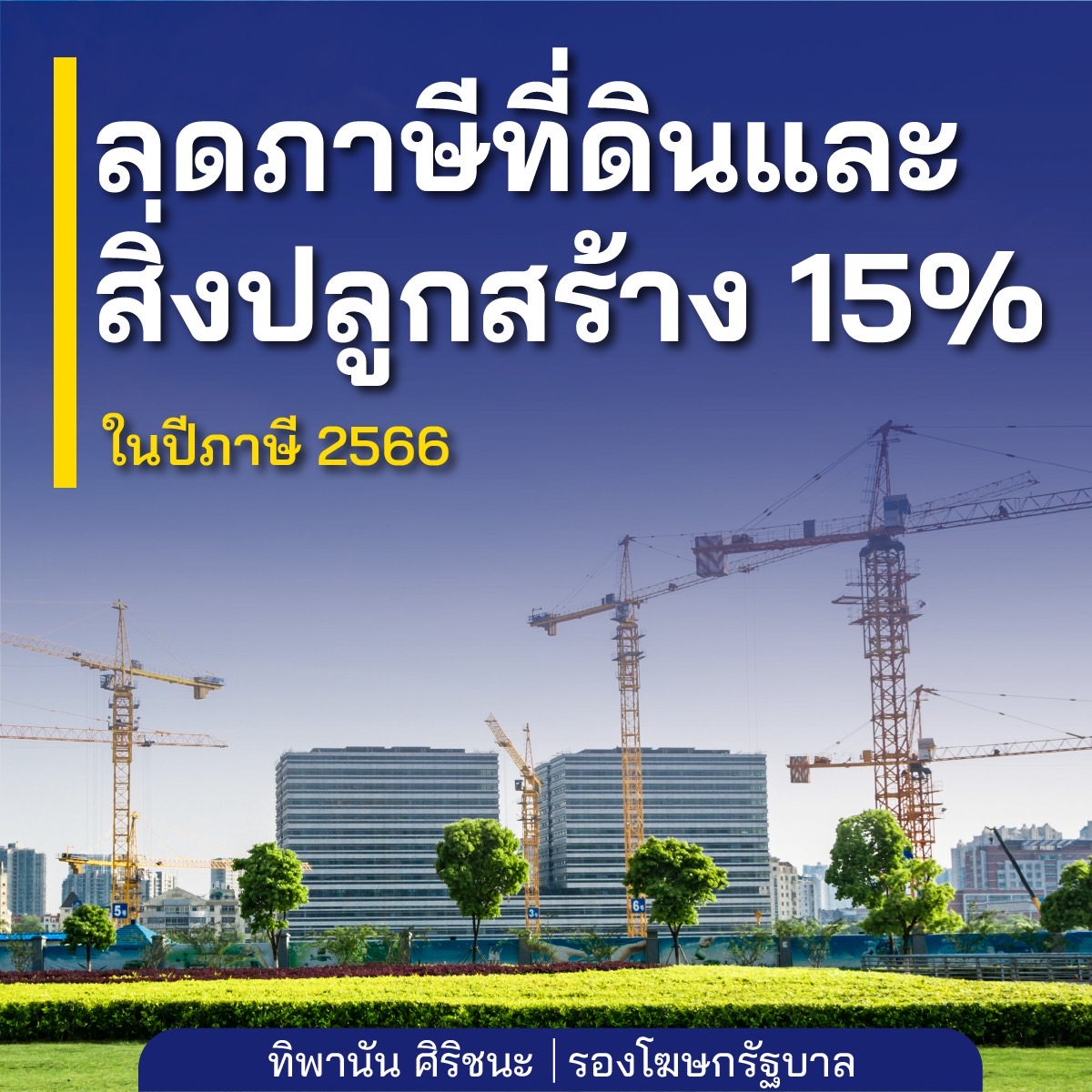 2. มาตรการลดภาษีที่ดินและสิ่งปลูกสร้างปี 2566 โดยลดภาษีให้ในอัตราร้อยละ 15 ของจำนวนภาษีที่คำนวณได้สำหรับการจัดเก็บภาษีที่ดินและสิ่งปลูกสร้างของปีภาษี 2566