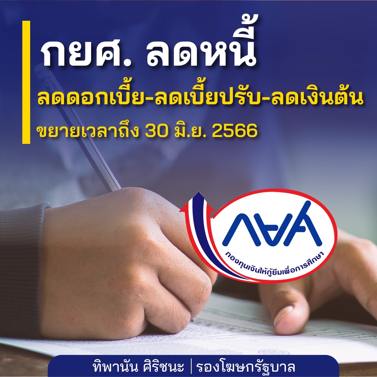 16. กยศ. ลดหนี้ ลดเบี้ยปรับ ลดเงินต้น ขยายเวลาถึง 30 มิถุนายน 2566