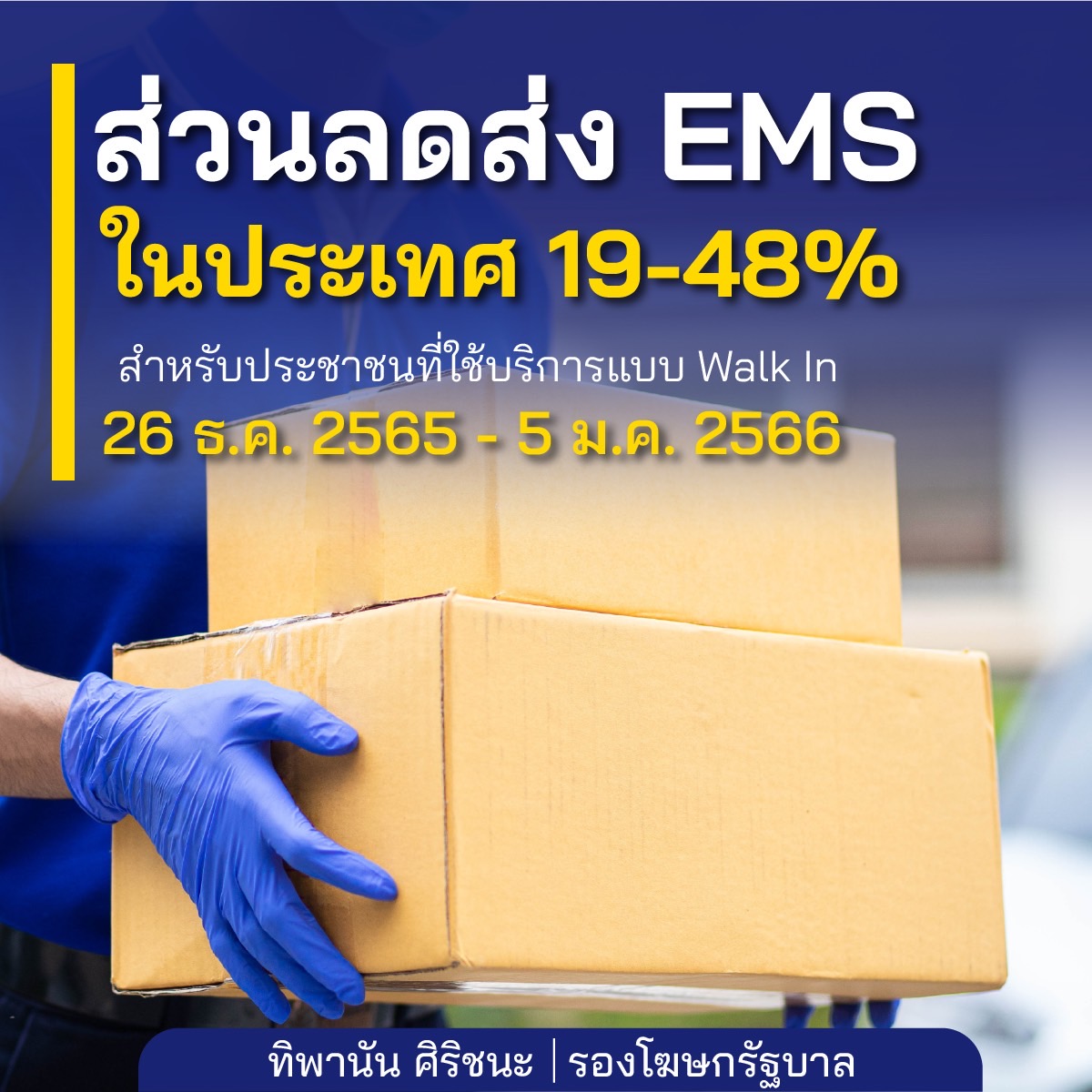 17.ส่วนลดส่ง EMS ในประเทศ 19-48% สำหรับประชาชนที่ใช้บริการแบบ walk in ตั้งแต่วันที่ 26 ธันวาคม 2565 ถึง 5 มกราคม 2566