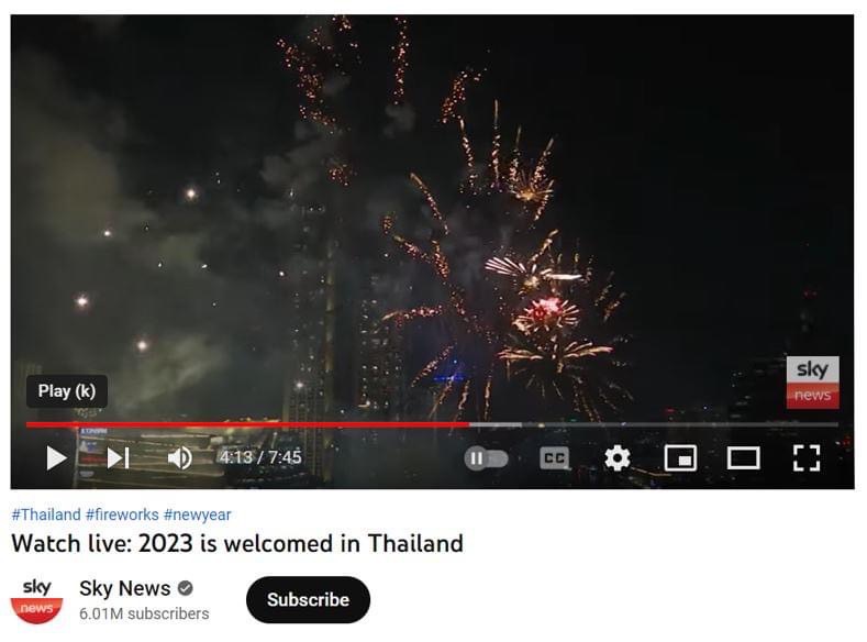 ตระการตาด้วยการแสดงพลุ “พลังแห่งหัวใจไทย ยิ่งใหญ่สะกดโลก The World For Thailand อันตราตรึงใจในคืนส่งท้ายปีเก่าต้อนรับปีใหม่ จนได้รับความสนใจ พร้อมได้รับคัดเลือกจากเว็บไซต์และสื่อโซเชียลของสำนักข่าวต่างประเทศ