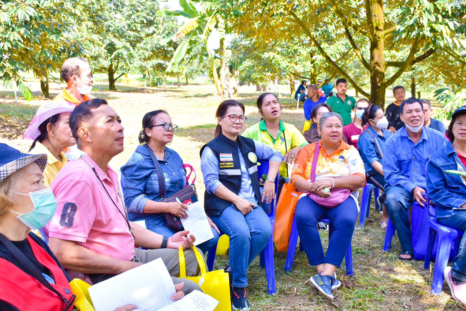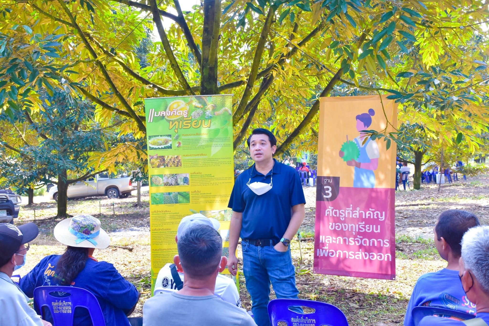อีกทั้งมีการเรียนรู้ภาคสนาม แบ่งเป็น 4 ฐานกิจกรรม ได้แก่ การบริหารจัดการมาตรฐาน GAP ของทุเรียน การใช้สารป้องกันกำจัดศัตรูพืชอย่างปลอดภัย การใช้และดูแลรักษาอุปกรณ์เครื่องพ่นสารฯชนิดต่าง ๆ ในทุเรียน และการส่งเสริมระบบการจัดการน้ำ เทคนิคส่งเสริมการออกดอก และติดผล