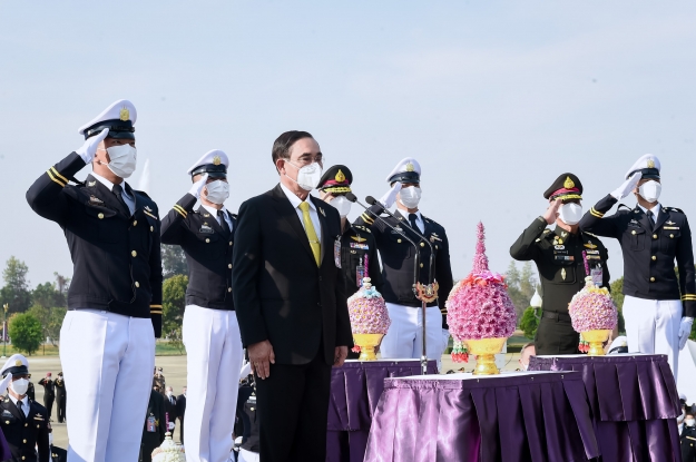 โดยการคำนับ วางพานพุ่มสักการะ แล้วถวายความเคารพโดยการคำนับอีกครั้งหนึ่ง โอกาสนี้ นายกรัฐมนตรีกล่าวคำปฏิญญาณ “ข้าพระพุทธเจ้า จักรักษามรดกของพระองค์ท่านไว้ด้วยชีวิต” ผู้ร่วมพิธีกล่าวตาม 3 ครั้ง ต่อจากนั้น นายกรัฐมนตรีและคณะไปยังอนุสรณ์สถาน โรงเรียนเตรียมทหาร เพื่อวางพวงมาลา เสร็จแล้วนายกรัฐมนตรีและคณะเดินทางไปยังอาคารกองบัญชาการ โรงเรียนเตรียมทหาร เข้าสู่หอประชุมนวนครินทร์