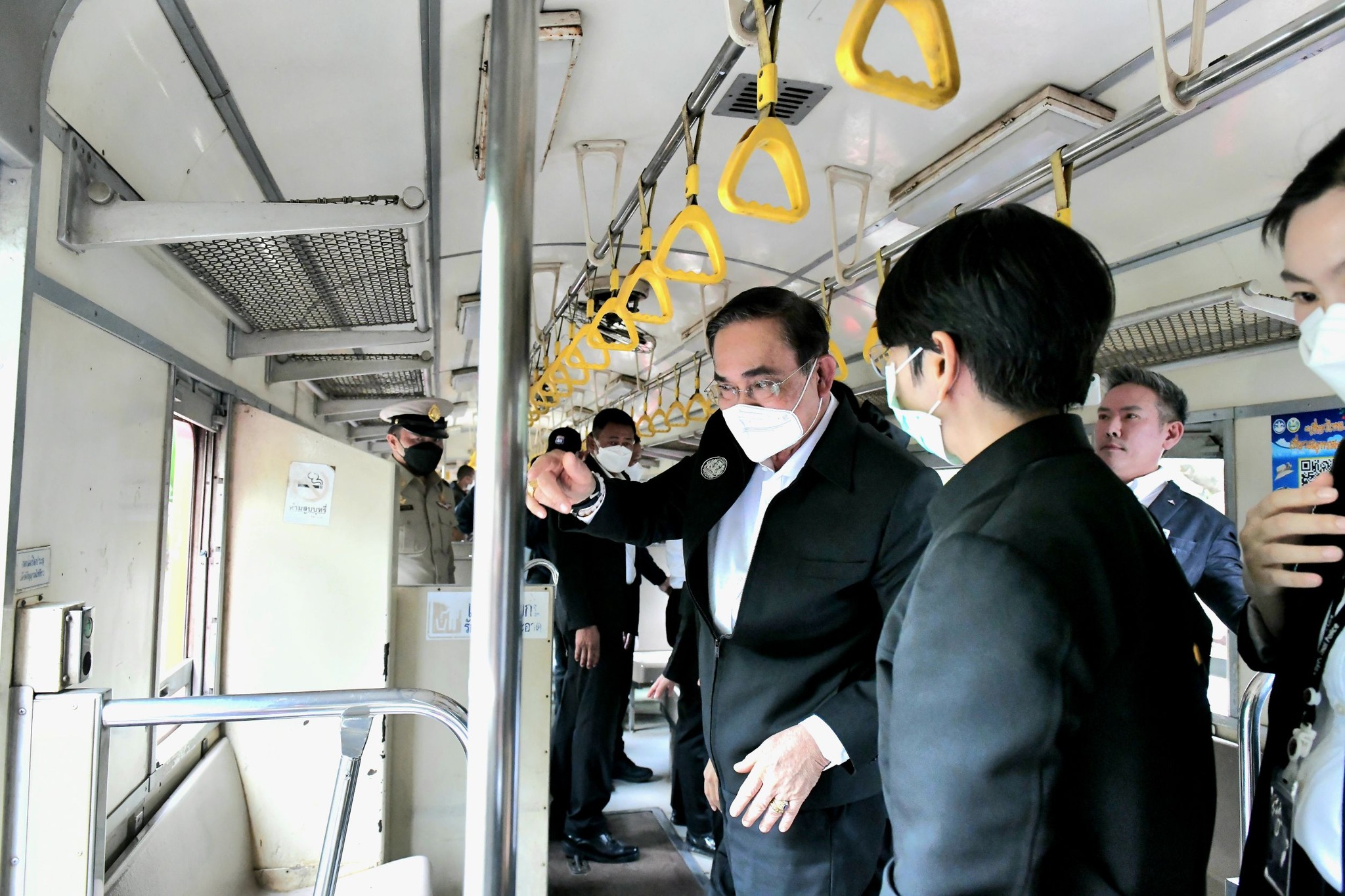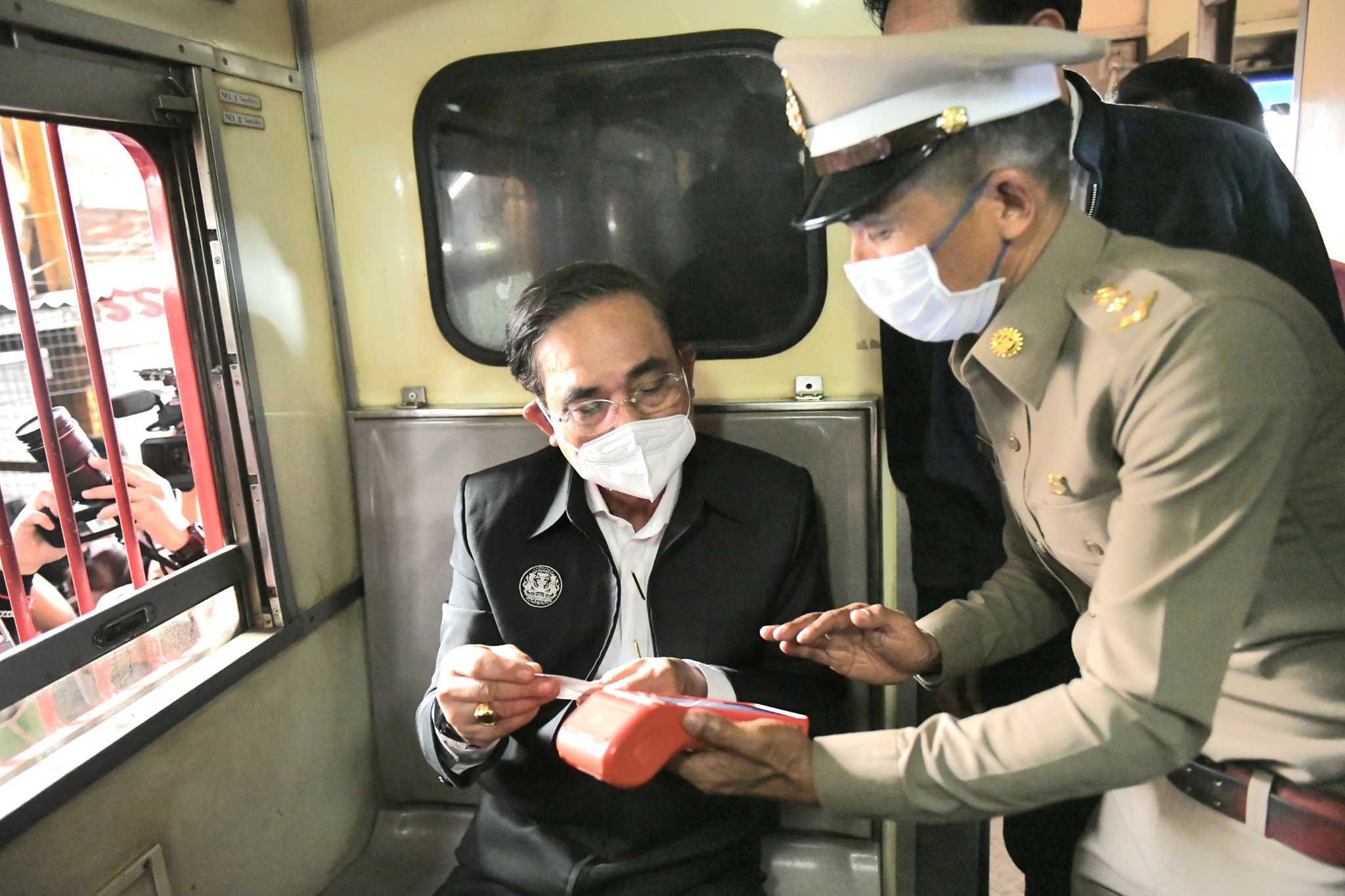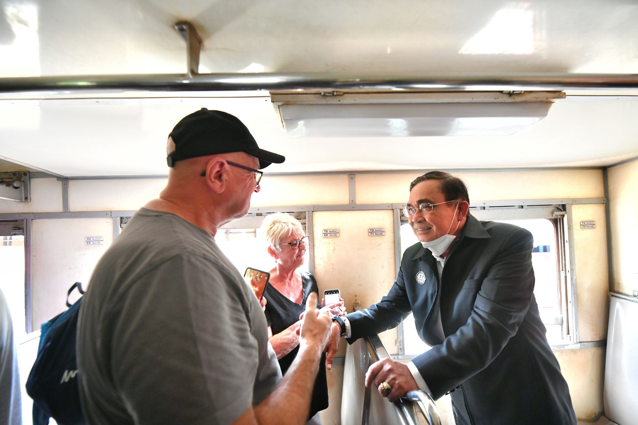 โดยระหว่างเดินทางโดยรถไฟ นายกรัฐมนตรีได้เดินทักทายนักท่องเที่ยวซึ่งส่วนใหญ่เป็นชาวต่างประเทศที่โดยสารมากับรถไฟขบวนดังกล่าวด้วย โดยบรรยากาศบนขบวนรถไฟเป็นไปอย่างคึกคักท่ามกลางนักท่องที่ยวชาวต่างประเทศจำนวนมาก ที่เดินทางเพื่อมาท่องเที่ยวและเยี่ยมชมแหล่งท่องเที่ยวสำคัญที่มีชื่อเสียงระดับโลกของจังหวัดสมุทรสงครามคือ “ตลาดร่มหุบ”