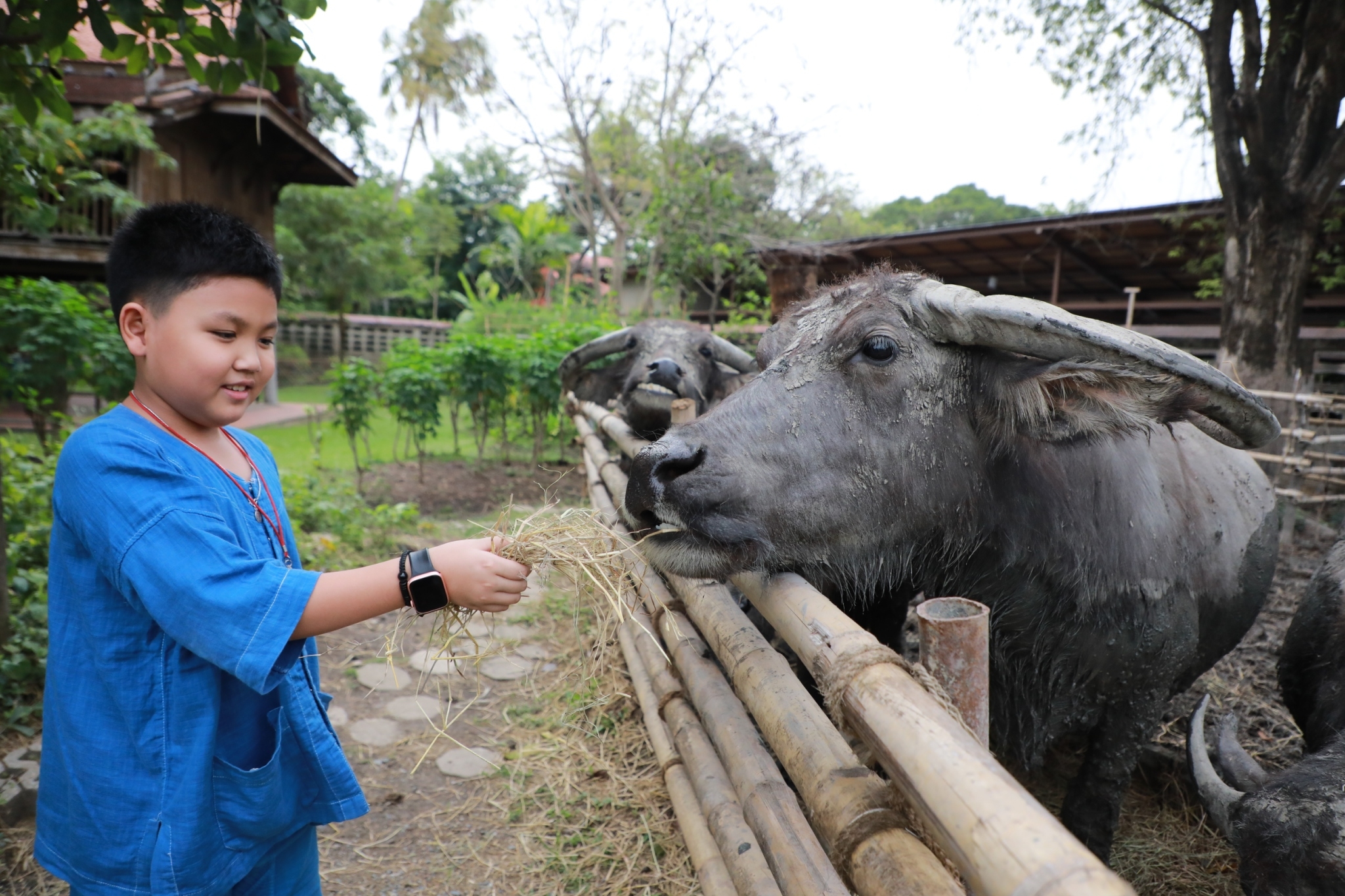 ปิดท้ายที่โซน D แวะมาเดินชมบรรยากาศสบายๆ ในหมู่บ้านปฐม ที่มีฐานเรียนรู้เรื่องเกษตรอินทรีย์ ทั้งการทำปัจจัยการผลิต การแปรรูป งานนี้เป็นโอกาสให้เด็กได้สัมผัสและเรียนรู้วิถีชาวนา แบบได้ทดลองทำจริง เช่น ดำนา สีข้าว ฝัดข้าว และได้เจอ “ควาย”ตัวเป็นๆ ที่อยู่คู่กับชาวนาไทยมายาวนาน ซึ่งในยุคนี้หาชมได้ยากนัก