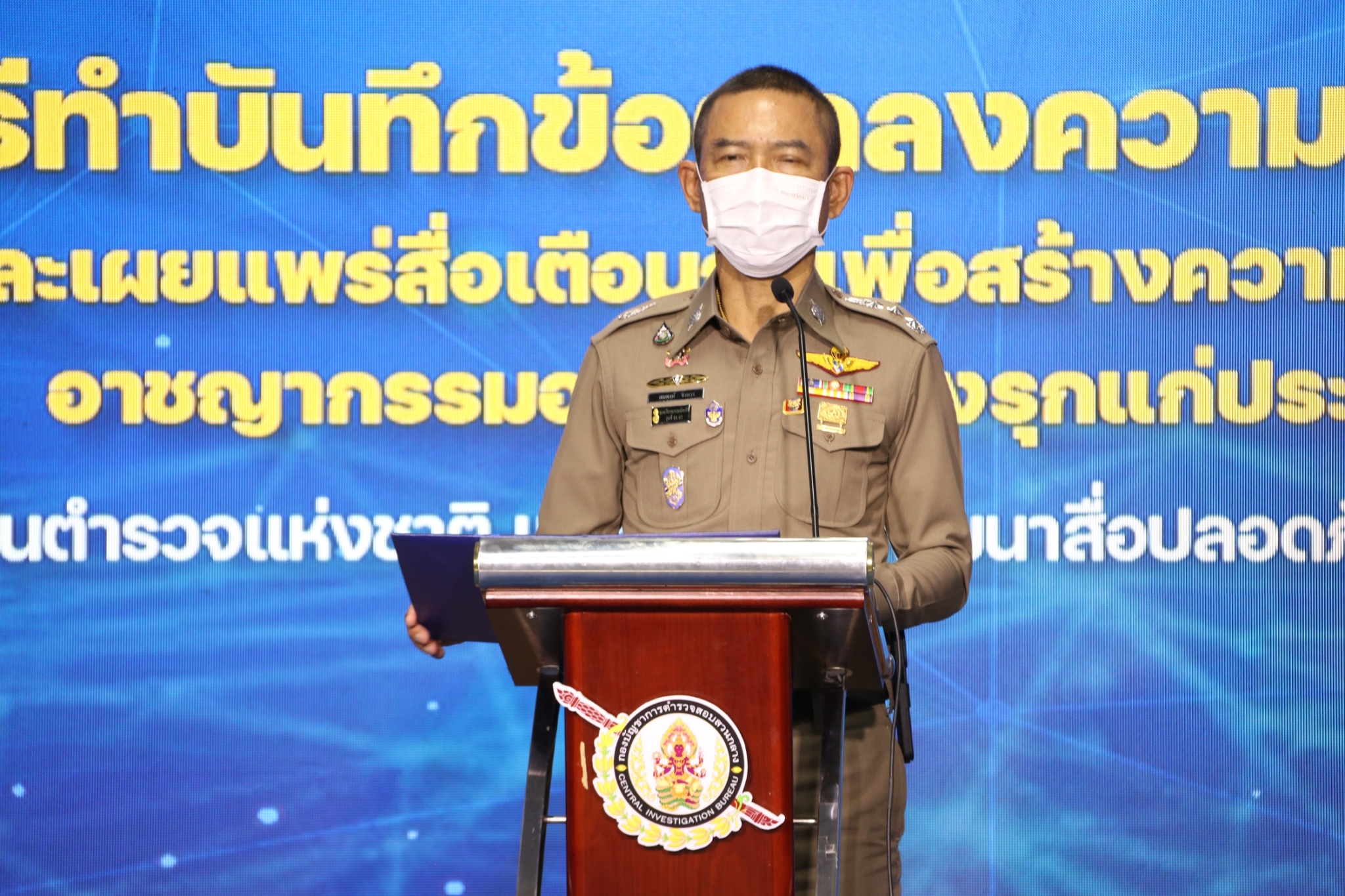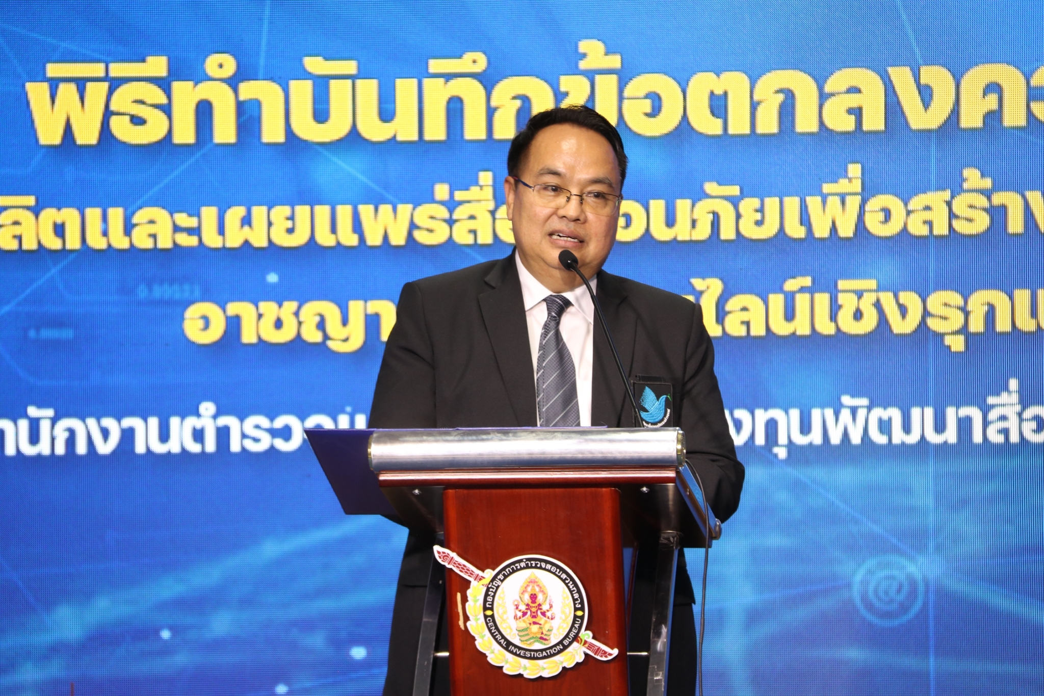 โดย พล.ต.อ.ดำรงศักดิ์ กิตติประภัสร์ ผู้บัญชาการตำรวจแห่งชาติ มอบหมายให้พล.ต.ท.สมพงษ์ ชิงดวง ผู้ช่วยผู้บัญชาการตำรวจแห่งชาติเป็นผู้แทน ร่วมกับ ดร.ธนกร ศรีสุขใส ผู้จัดการกองทุนพัฒนาสื่อปลอดภัยและสร้างสรรค์ ณ ห้องประชุม อาคารประชาอารักษ์ กองบังคับการปราบปราม ถนนพหลโยธิน