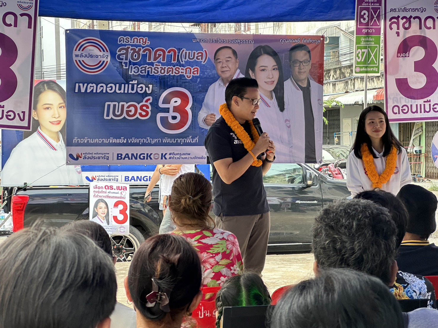 ขณะที่ ดร.สุชาดากล่าวว่า แม้พื้นที่นี้จะเป็นเขตที่เป็นฐานเสียงของพรรคอื่น แต่จากการลงพื้นที่มาตลอด 3 เดือน ก็มีความมั่นใจ เพราะตนไม่ได้ต่อสู้กับใคร แต่ตนขอสู้กับปัญหาเศรษฐกิจเพื่อพี่น้องชาวดอนเมือง อยากขอโอกาสจากชาวดอนเมืองเปิดใจเปลี่ยนจากคนเก่า ให้โอกาสคนรุ่นใหม่ได้เข้ามาทำงานเปลี่ยนแปลงดอนเมืองให้ดีขึ้น