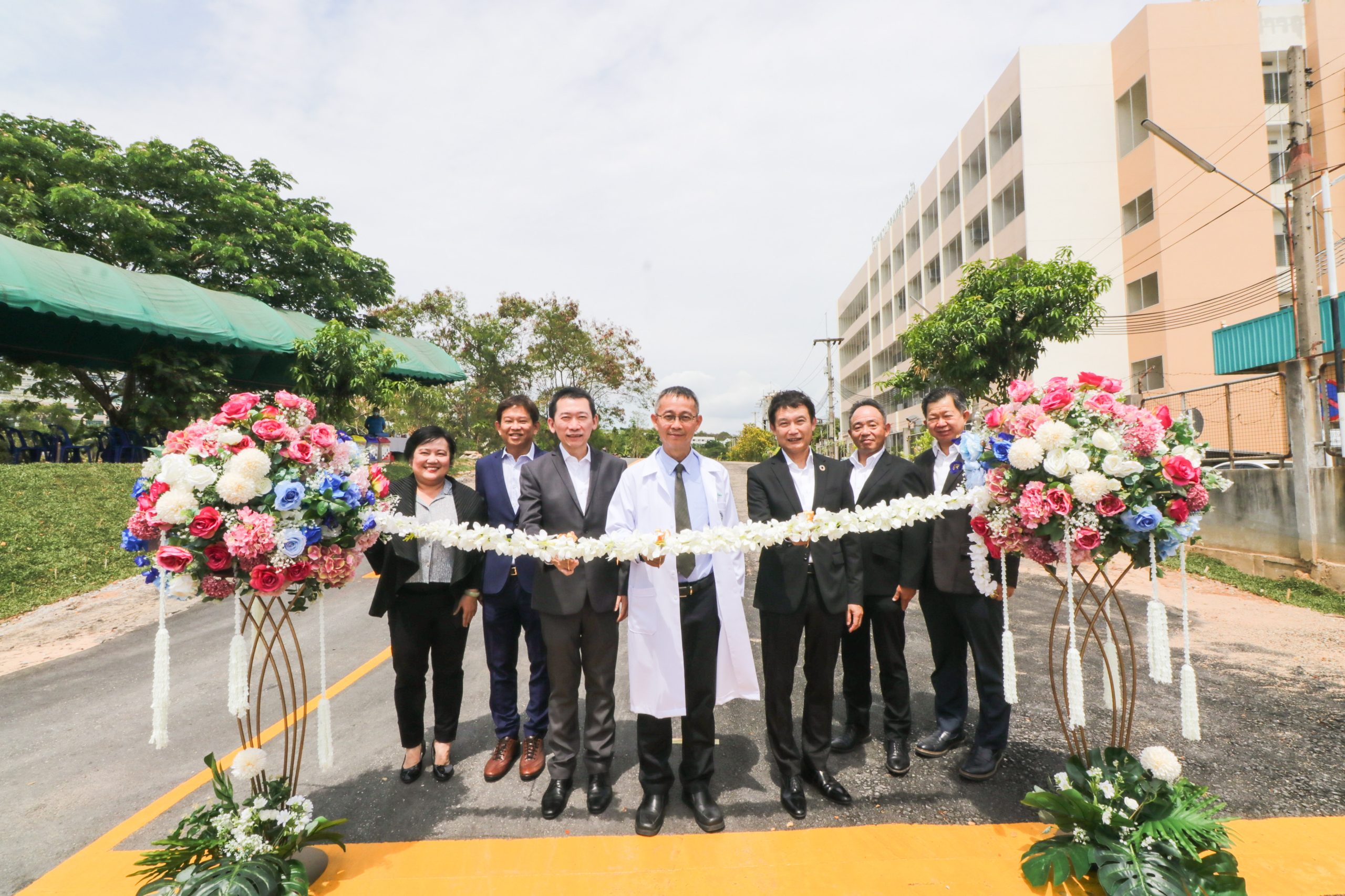 โดยมี นายแพทย์ราเมศร์ อำไพพิศ ผู้อำนวยการโรงพยาบาลแหลมฉบัง เป็นผู้รับมอบโครงการฯ ยางมะตอยน้ำสูตรพิเศษนี้ถือเป็นนวัตกรรมด้านผลิตภัณฑ์ที่มีจุดเด่นด้านการยึดเกาะระหว่างชั้นถนน รวมถึงป้องกันการซึมของความชื้นผ่านชั้นทาง เป็นผลให้ชั้นถนนมีความแข็งแรงและคงทนเพิ่มขึ้น อีกทั้งยังเป็นมิตรต่อสิ่งแวดล้อมอีกด้วย