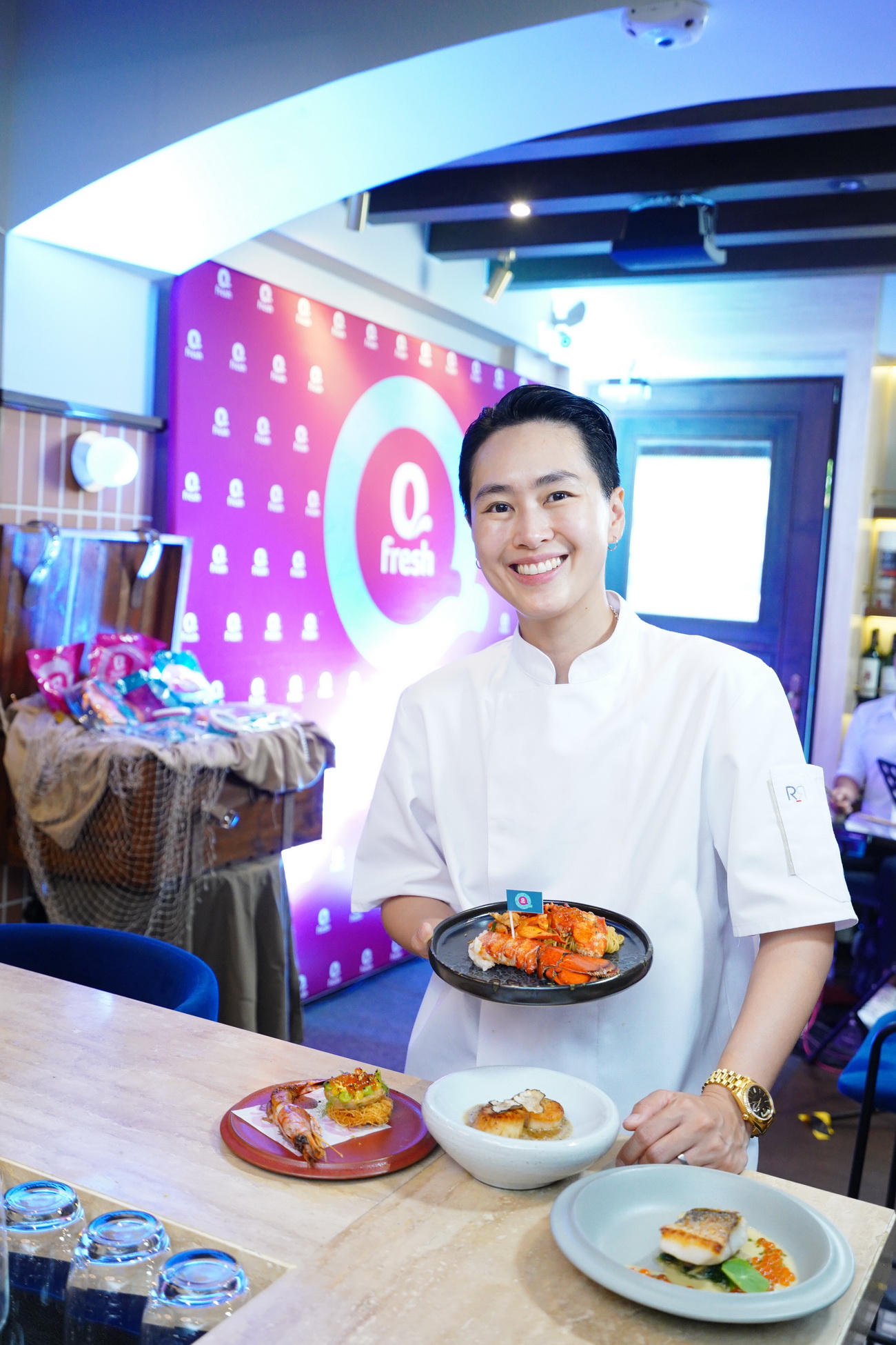 งานนี้ Qfresh ร่วมกับ ร้าน Flat Table & Wine ชวนเปิดขุมทรัพย์ใต้ท้องทะเลลึก ร่วมสัมผัสประสบการณ์ความพรีเมี่ยมบนพื้นดิน ในงาน “Qfresh’s Table Treasure on The Flat Table” โดย เชฟอั้ม-พีชญา สุขวิบูลย์ Owner & Chef ของ Flat Table & Wine ที่นำวัตถุดิบสุดพรีเมี่ยมจากคิวเฟรซ