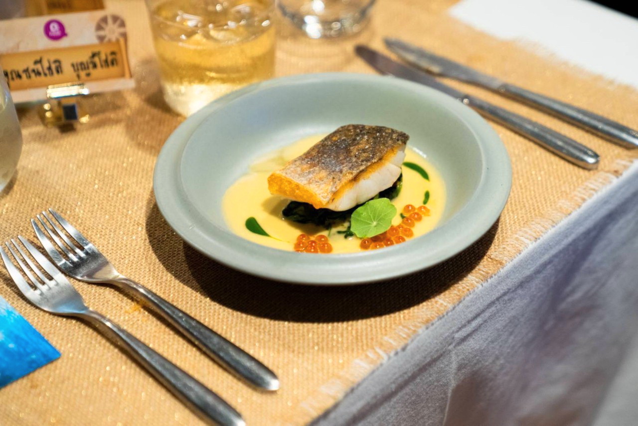 3. Pan-fried sea bass with beurre blanc sauce: ปลากะพงขาว จากฟาร์มปิด ที่ได้มาตรฐาน GAP สะอาดปลอดภัย เนื้อแน่น หวาน ทานคู่กับไข่ปลาแซลมอน (Ikura Chum) ที่นำเข้าจากประเทศญี่ปุ่น พร้อม Beurre blanc sauce สูตรพิเศษของทางร้าน อร่อยเข้ากัน อย่างลงตัว