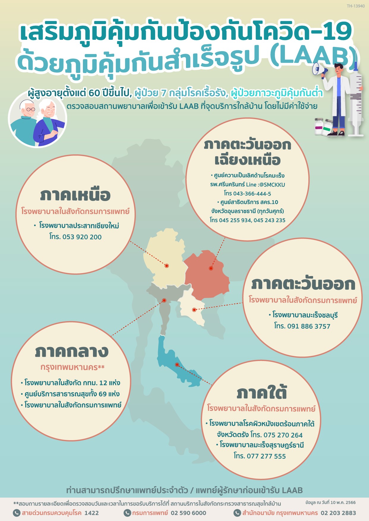 ท่านสามารถติดต่อสอบถามข้อมูลเพิ่มเติมเพื่อตรวจสอบวันและเวลาในการขอรับบริการได้ที่สถานบริการในสังกัดกระทรวงสาธารณสุขใกล้บ้าน สายด่วนกรมควบคุมโรค โทร. 1422, กรมการแพทย์ โทร.0-2590-6000 และ สำนักอนามัย กรุงเทพมหานคร โทร.0-2203-2883