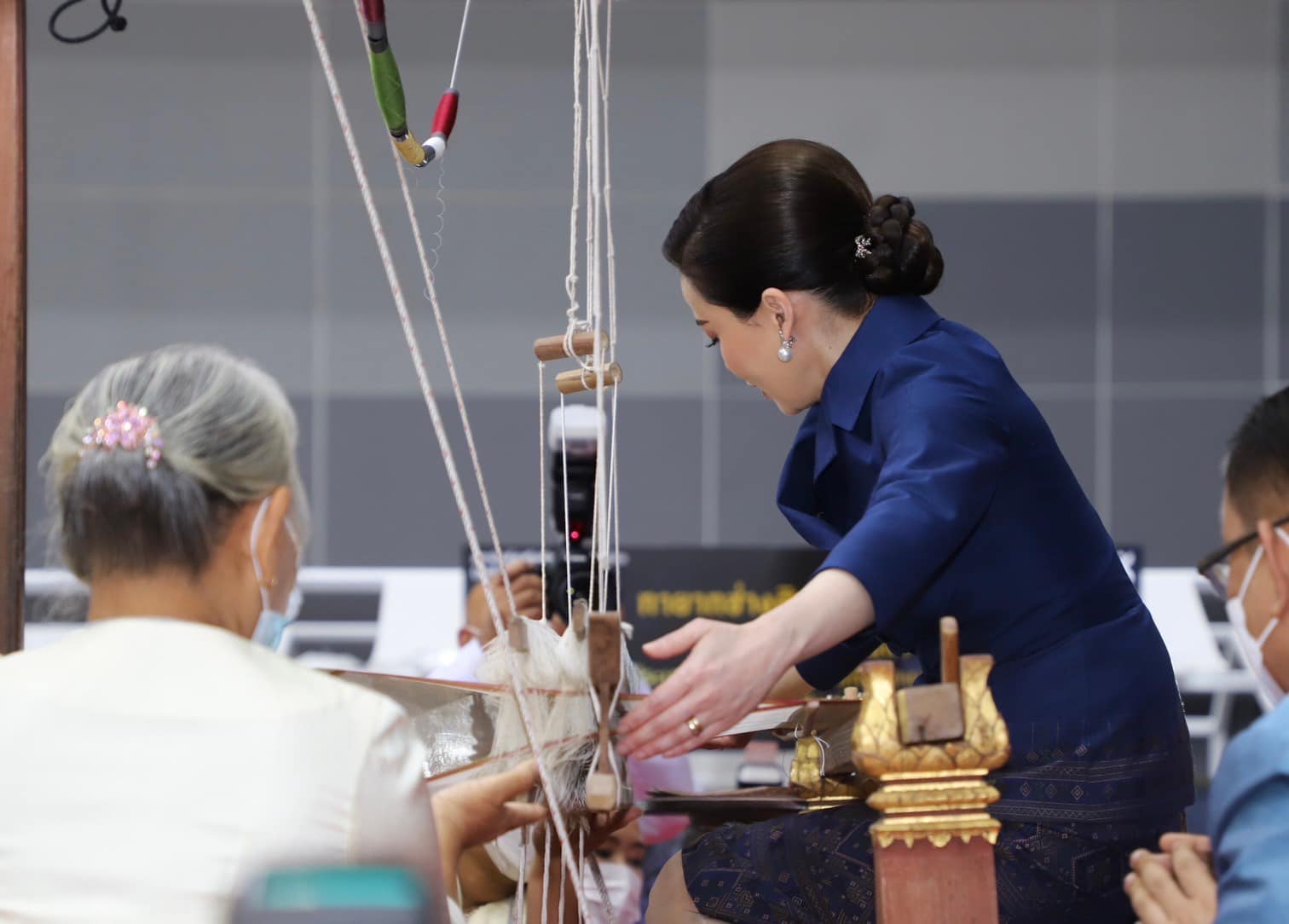 การนี้ทรงสนพระทัยการสาธิตศิลปหัตกรรมที่ล้ำค่าและทรงให้กำลังใจช่างในการสืบสานงานหัตถศิลป์ของแผ่นดินให้อยู่สืบไป และก่อนเสด็จพระราชดำเนินกลับทรงร่วมกิจกรรมทอผ้าไหมยกทองด้วย กี่ทอมือโบราณ พันห้าร้อยตะกอ จากหมู่บ้านท่าสว่าง ตำบลท่าสว่าง อำเภอเมืองสุรินทร์ จังหวัดสุรินทร์ ซึ่งเป็นหมู่บ้านที่ยังคงอนุรักษ์วิธีการวิธีการทอผ้าไหมยกทองแบบโบราณ อันยังคงไว้ซึ่งงานหัตถศิลป์อันล้ำค่าของไทย