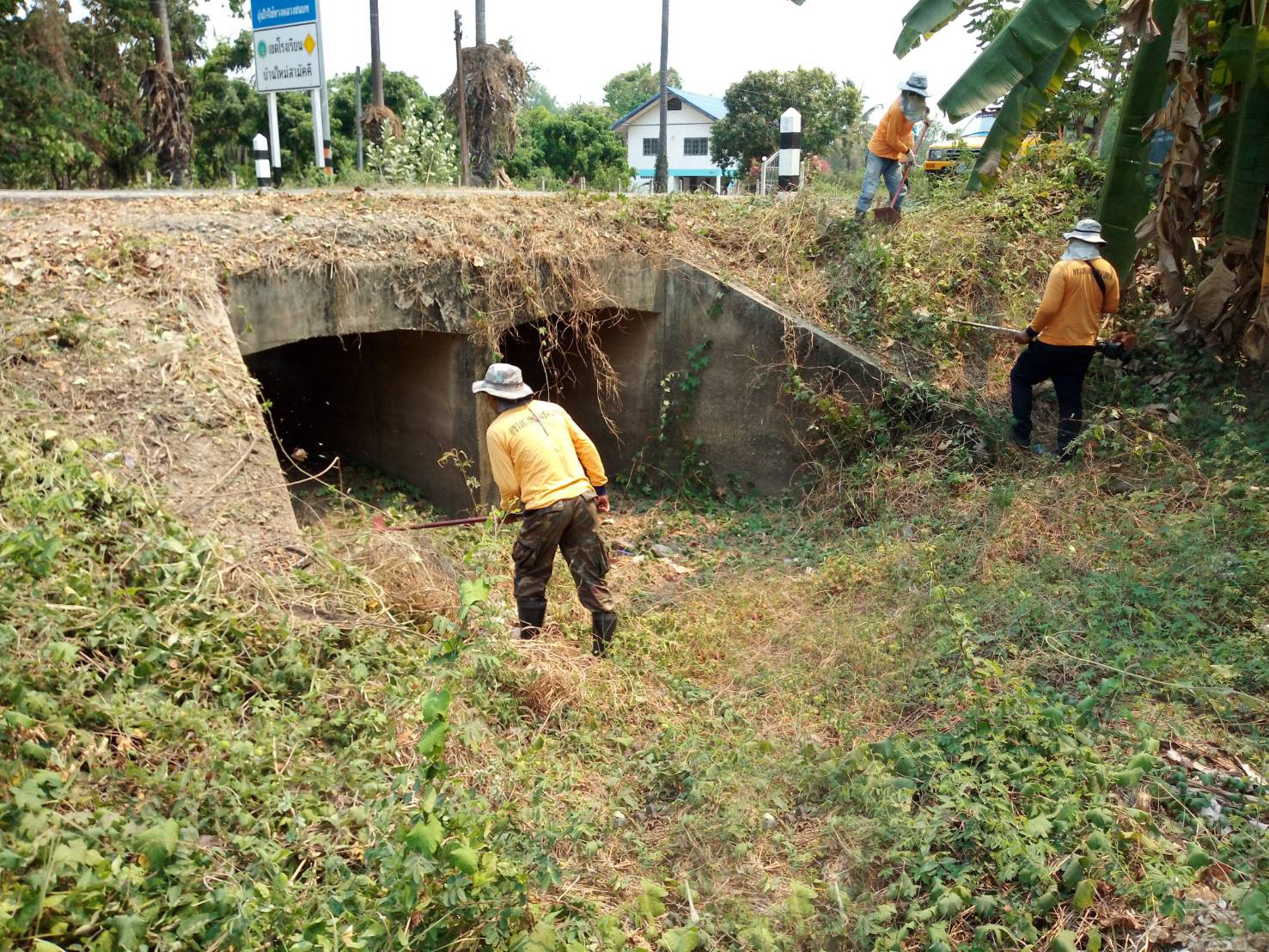 – ทำความสะอาดช่องระบายน้ำ ตัดหญ้า กำจัดวัชพืชที่ขวางทางระบายน้ำ ท่อลอด สะพาน
