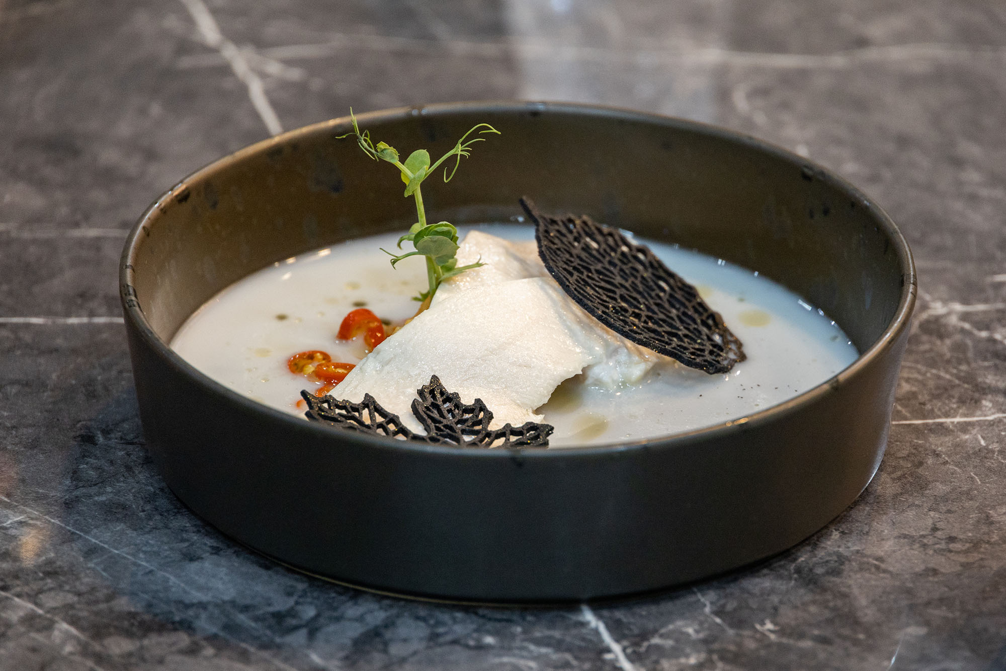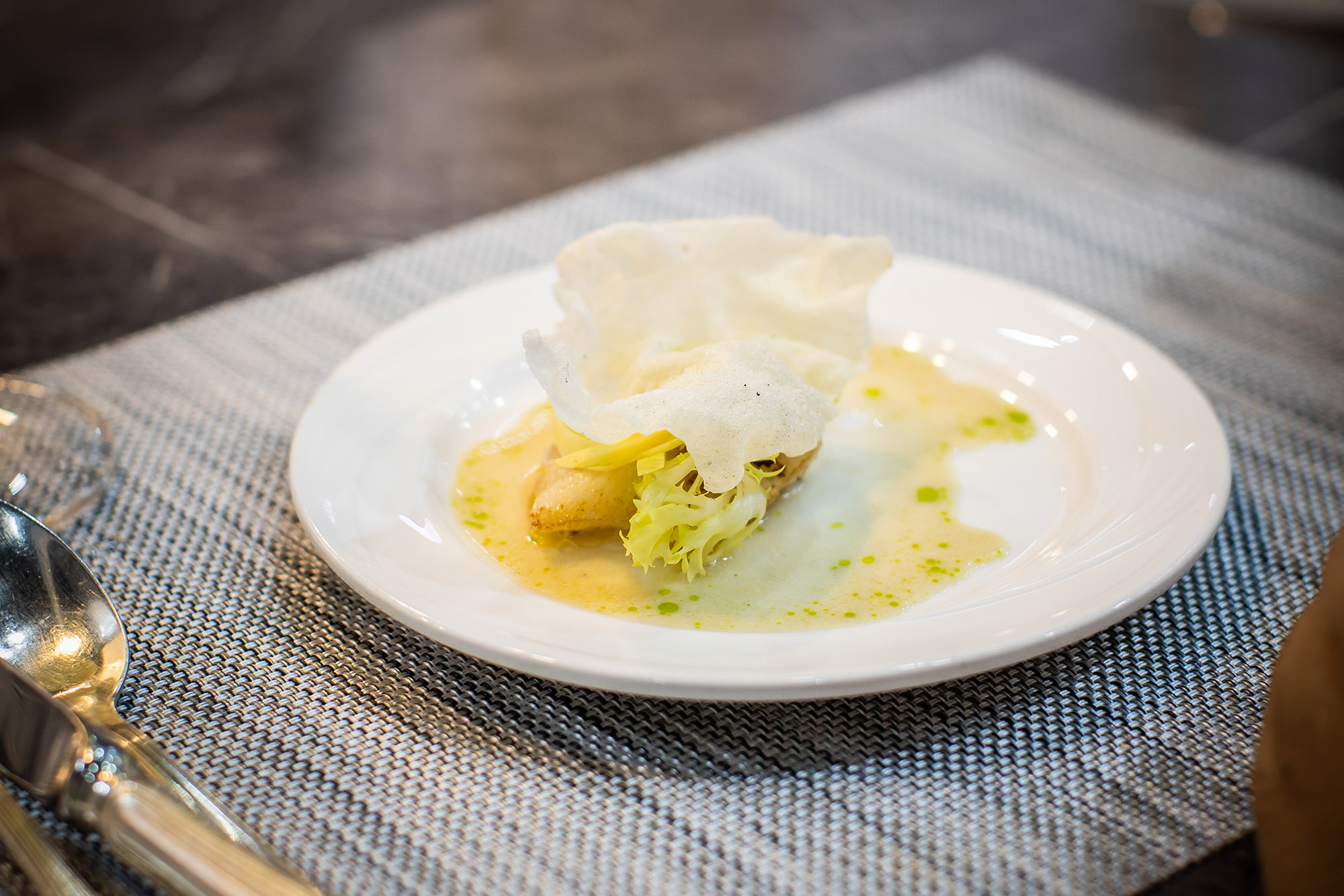 มาถึงอีกหนึ่งจานที่ภูมิใจนำเสนอ กับ Main dish เมนู “ไก่ กงฟีต์ ซอสต้มข่า” รังสรรค์ความอร่อยด้วยฝีมือของ เชฟพฤกษ์ – พฤกษ์ สัมพันธวรบุตร เชฟไทยมากฝีมือและเทคนิคชั้นเซียน เลือกนำเอาอกไก่มาตกแต่ง ปรุงรสด้วยน้ำปลา น้ำตาล กะทิ ปรุงรส นำใส่เครื่องซูวี (sous vide) ใช้ความร้อนในอุณหภูมิคงที่ เพื่อให้เนื้อสัตว์ ค่อย ๆ สุกอย่างช้า ๆ ถ้าเป็นวิธีแบบโบราณ คือ