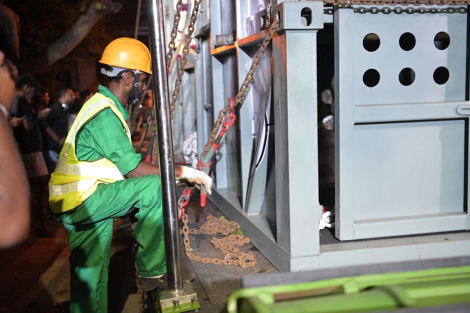 ซึ่งช่วงการยกกรงช้างโดยรถเครน ซึ่งขณะปฏิบัติการมีเจ้าหน้าที่ร่วมดำเนินการประมาณ 40 คน