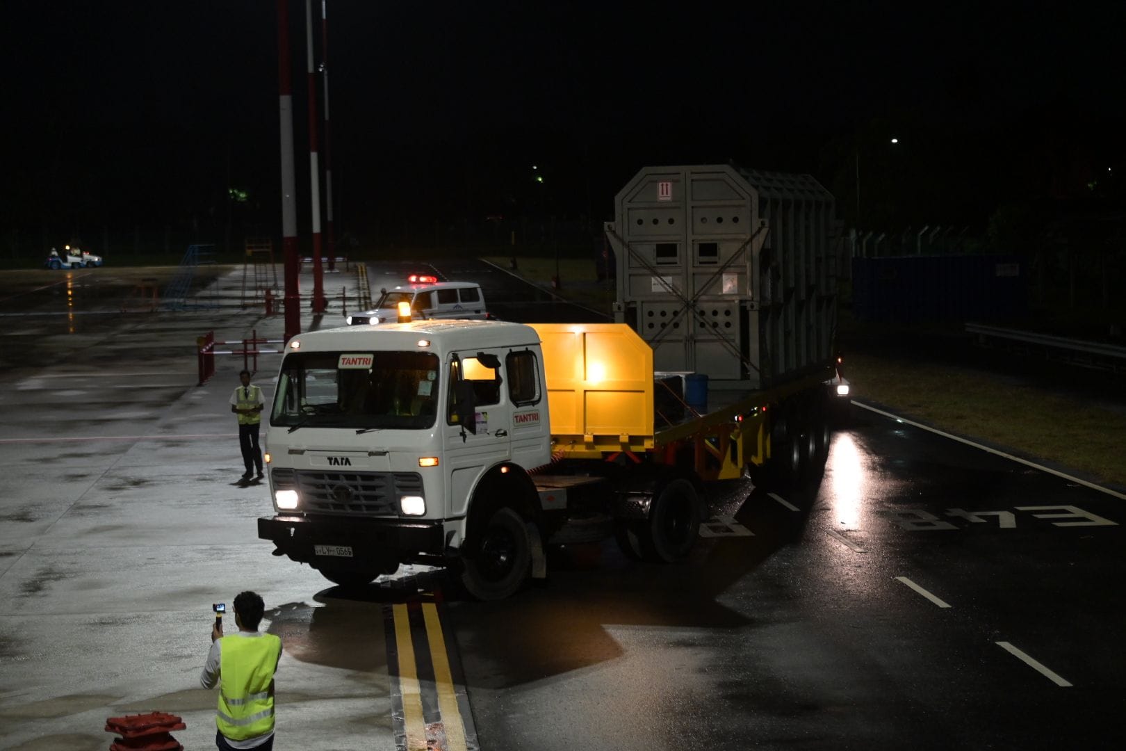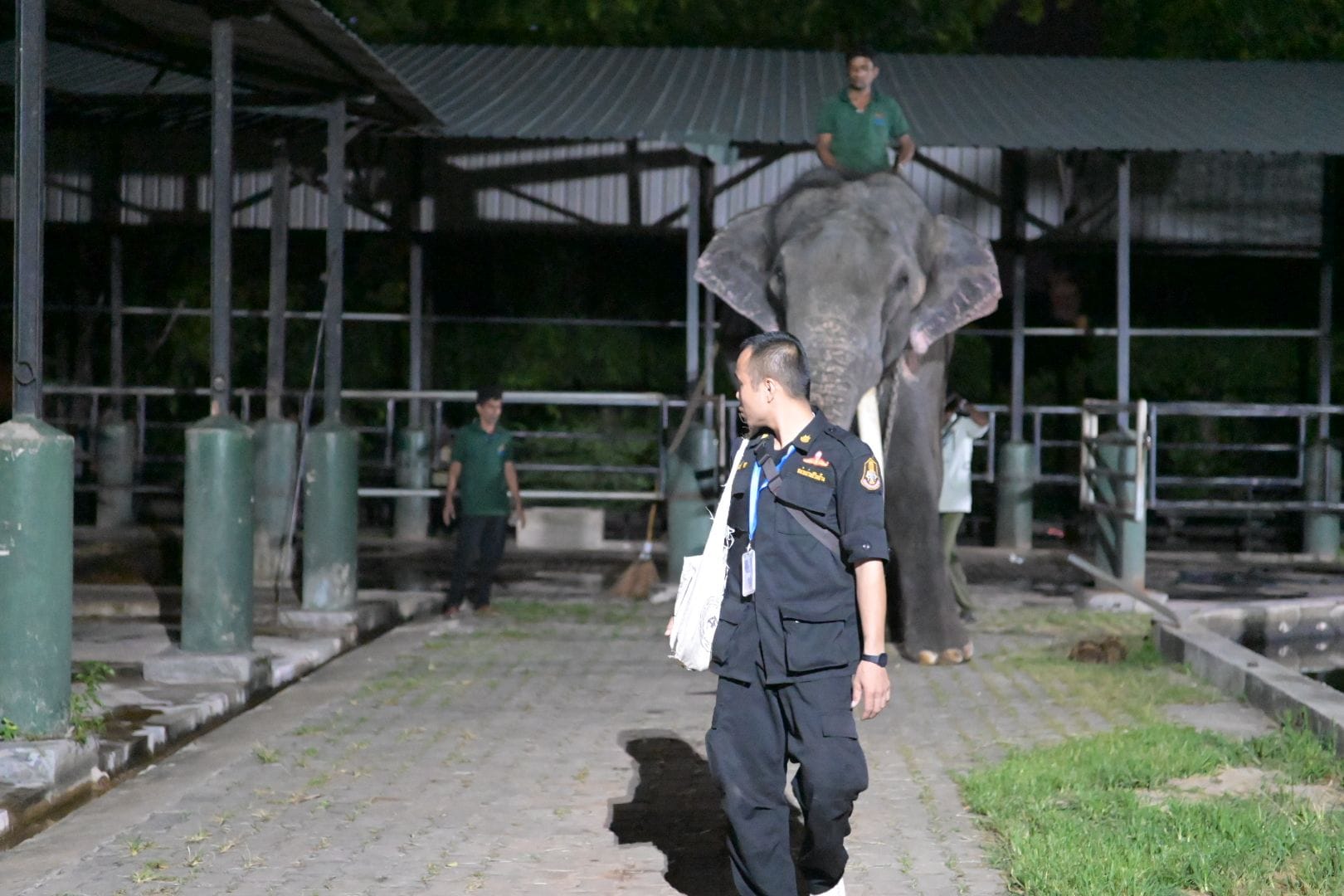 เวลา 03.00 น. ถึงคาร์โก้สนามบิน เวลา 03.25 น. สัตวแพทย์เก็บอุจจาระ ตรวจสอบช้าง และยกช้างเปลี่ยนรถ และเคลื่อนสู่เครื่องบิน พิธีการศุลกากร (ตม.) และโหลดสัมภาระและใช้รถเครนขนาดใหญ่ย้ายกรงช้างจากรถเทรลเลอร์ ในเวลา