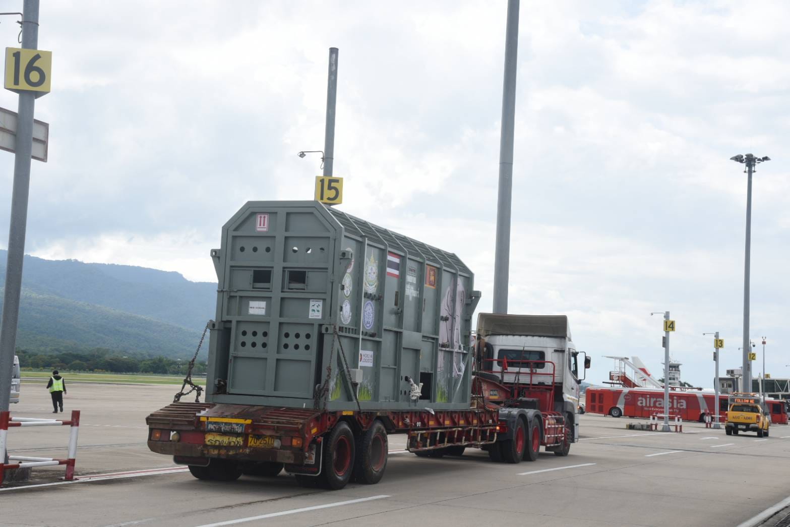 การมารับช้างที่ท่าอากาศยานเชียงใหม่ในครั้งนี้ มี วราวุธ ศิลปอาชา รัฐมนตรีว่าการกระทรวงทรัพยากรธรรมชาติและสิ่งแวดล้อม เดินทางมารับด้วยตนเอง ร่วมกับ จตุพร บุรุษพัฒน์ ปลัดกระทรวงทรัพยากรธรรมชาติและสิ่งแวดล้อม อรรถพล เจริญชันษา อธิบดีกรมทรัพยากรทางทะเลและชายฝั่ง รักษาราชการแทนอธิบดีกรมอุทยานแห่งชาติ สัตว์ป่า และพันธุ์พืช