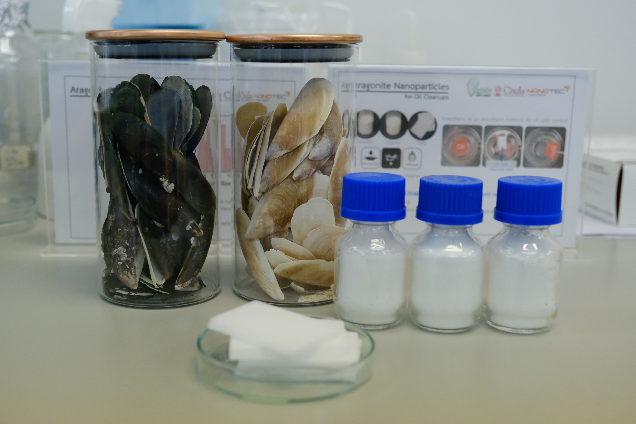 ซึ่งได้รับทุนสนับสนุนจากสำนักงานการวิจัยแห่งชาติ (วช.) เพื่อพัฒนาสินค้านวัตกรรมที่นำเอกลักษณ์และสมบัติเฉพาะของแคลเซียมคาร์บอเนตเปลือกหอยแมลงภู่ มาใช้ประโยชน์ในมิติต่างๆ ผ่านอนุภาคนาโนอะราโกไนต์ (Aragonite nanoparticles) สามารถตอบโจทย์นโยบายรัฐบาลเรื่องโมเดลเศรษฐกิจ BCG ด้านเศรษฐกิจสีเขียว (Green Economy) และเป็นส่วนหนึ่งในการสร้างระบบเศรษฐกิจหมุนเวียนที่เน้นการแปลงของเสียให้เป็นแหล่งรายได้