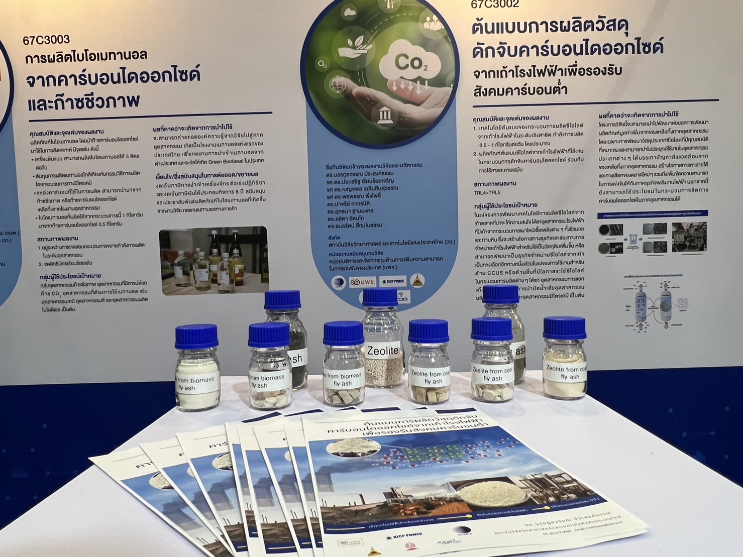 2) ต้นแบบการผลิตวัสดุดักจับคาร์บอนไดออกไซด์จากเถ้าโรงงานไฟฟ้าเพื่อรองรับสังคมคาร์บอน สามารถนำไปพัฒนาผลิตภัณฑ์ที่มีมูลค่าจากของเหลือทิ้งภาคอุตสาหกรรม โดยเฉพาะการพัฒนาวัสดุประเภทซีโอไลต์สำหรับนำไปประยุกต์ใช้งานประเภทต่างๆ