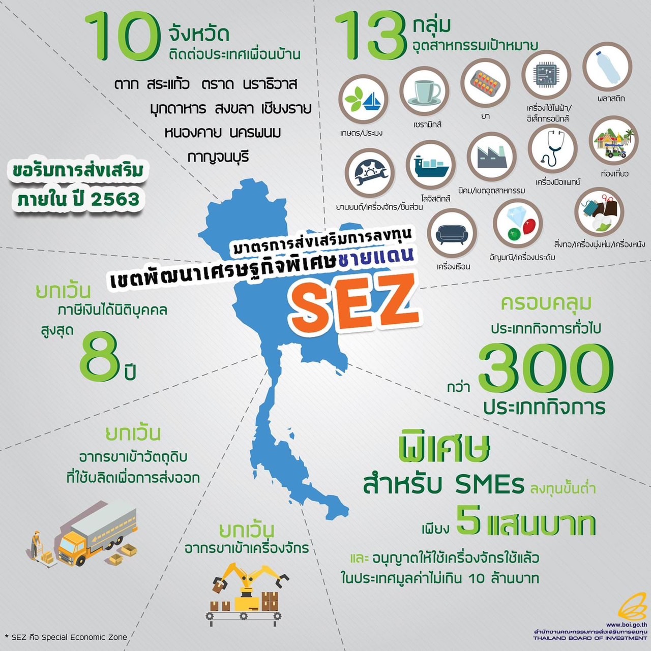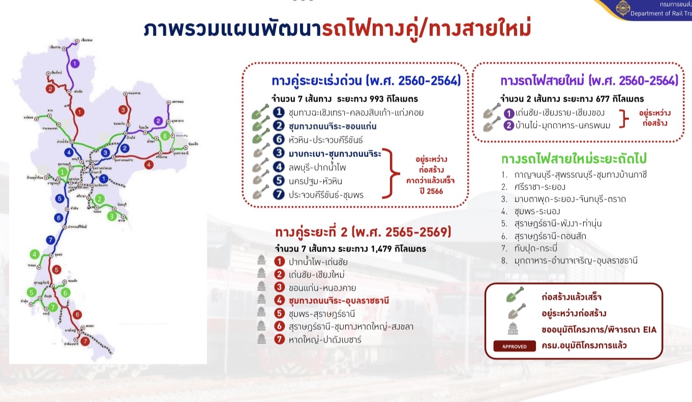 รถไฟความเร็วสูง 8 เส้นทาง ระยะทางรวม 2,507 กิโลเมตร, รถไฟความเร็วสูงเชื่อม 3 สนามบินในเขต EEC และล่าสุด คือ ถนนสายเศรษฐกิจเส้นประวัติศาสตร์เชื่อมต่อ 4 ประเทศอาเซียนเข้าด้วยทางหลวงหมายเลข 12 รองรับการพัฒนาพื้นที่เขตเศรษฐกิจพิเศษ ซึ่งเป็นเส้นทางยุทธศาสตร์สายเศรษฐกิจแนวตะวันออก-ตะวันตก (East-West Economic Corridor–EWEC)