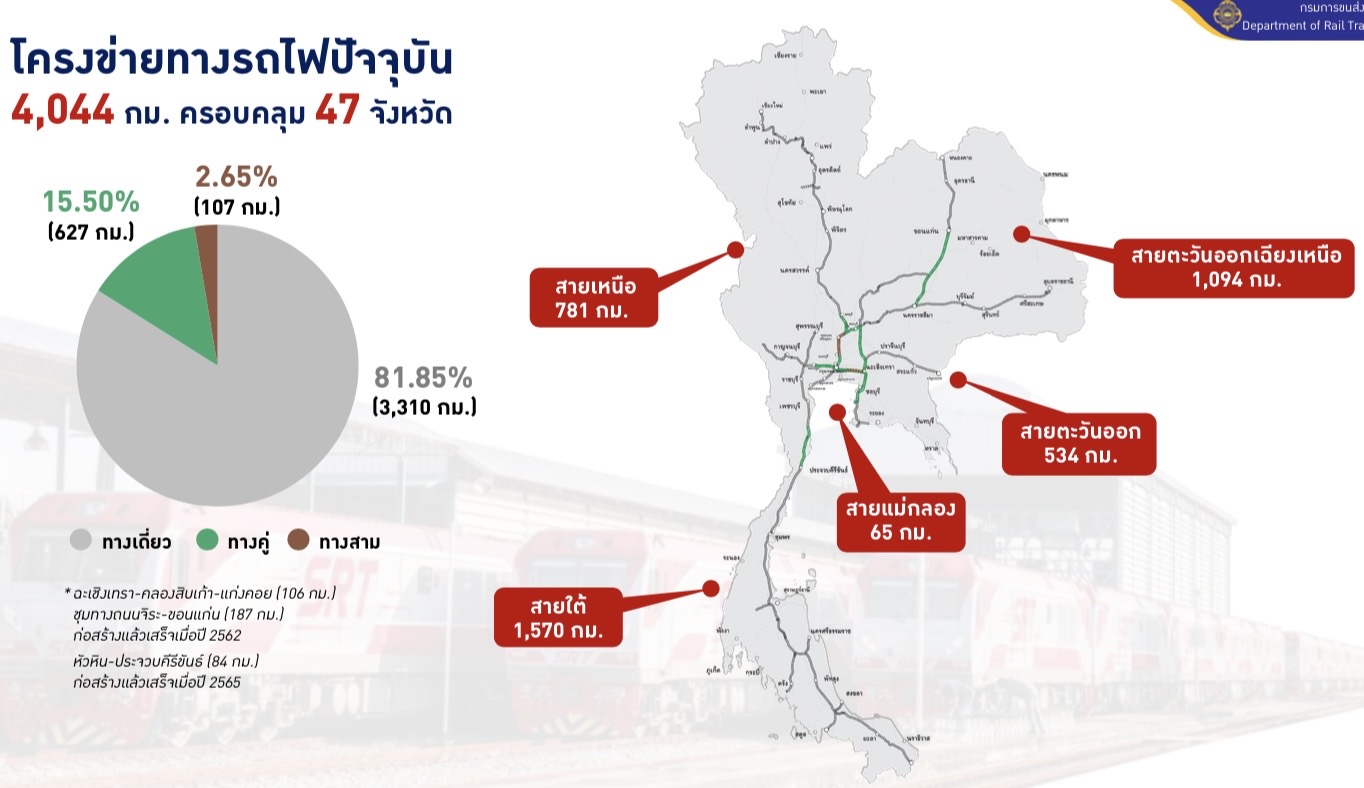 – ทางบก พัฒนาทางถนนเพิ่มขึ้นเป็นมากกว่า 12,000 กิโลเมตร และมอเตอร์เวย์ 3 สายบางปะอิน-โคราช, บางใหญ่-กาญจนบุรี, พัทยา-มาบตาพุด รวม 260 กิโลเมตร, สะพานข้ามทะเลสาบสงขลา และสะพานเชื่อมไทย-ประเทศเพื่อนบ้าน, รถไฟฟ้า 12 สาย, โครงข่ายทางรถไฟ 4,044 กิโลเมตรครอบคลุม 47 จังหวัด แบ่งเป็น ทางคู่ 14 เส้นทาง ระยะทางประมาณ 2,500 กิโลเมตร, ทางรถไฟสายใหม่ 10 เส้นทาง,