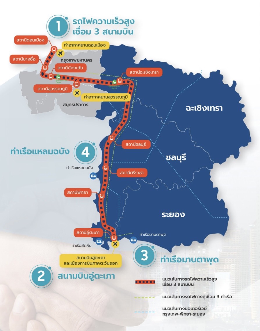 – ทางน้ำ โดยพัฒนาท่าเรือมาบตาพุด และท่าเรือแหลมฉบัง