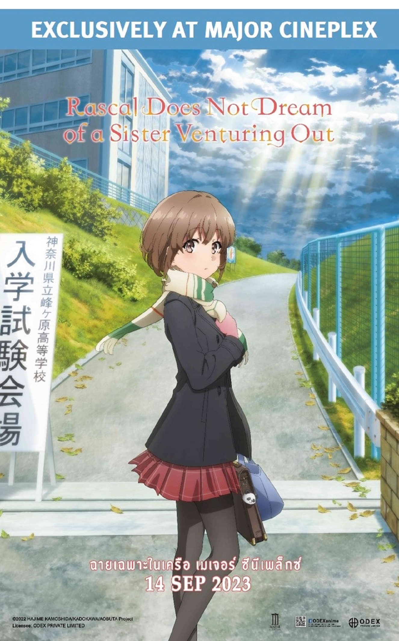 เมเจอร์ ซีนีเพล็กซ์ กรุ้ป ส่งตรงภาพยนตร์การ์ตูนญี่ปุ่นยอดนิยมเรื่องดัง “Rascal Does Not Dream of a Sister Venturing Out” หนังอนิเมะกระแสแรงในญี่ปุ่นเข้าฉายเอ็กซ์คลูซีฟเฉพาะโรงภาพยนตร์ในเครือเมเจอร์ ซีนีเพล็กซ์ กรุ้ป 20 สาขาทั้งในกรุงเทพฯ และต่างจังหวัด ระหว่างวันที่ 14-20 กันยายน 2566