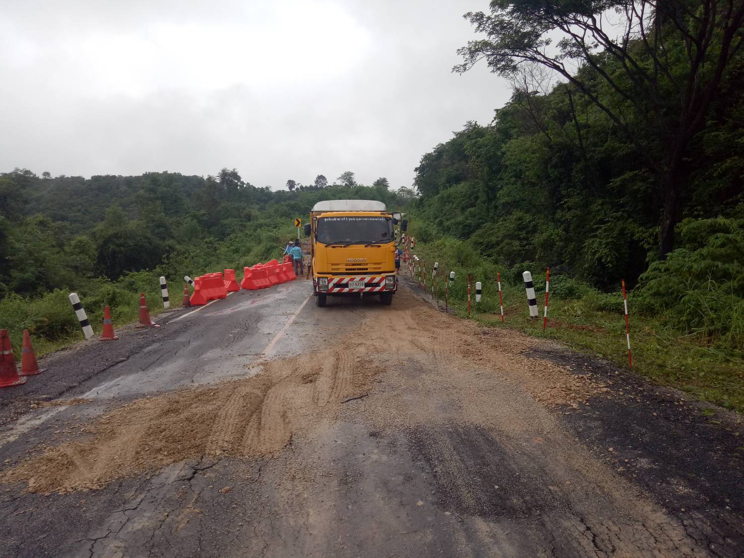 – ถนนสาย กส.4001 – บ้านโคกกลาง อำเภอนาคู และเต่างอย จังหวัดกาฬสินธุ์ ช่วง กม. ที่ 5+600 – 5+700 น้ำกัดเซาะคันทางทรุดตัว ปิดช่องจราจร 1 ช่องทาง