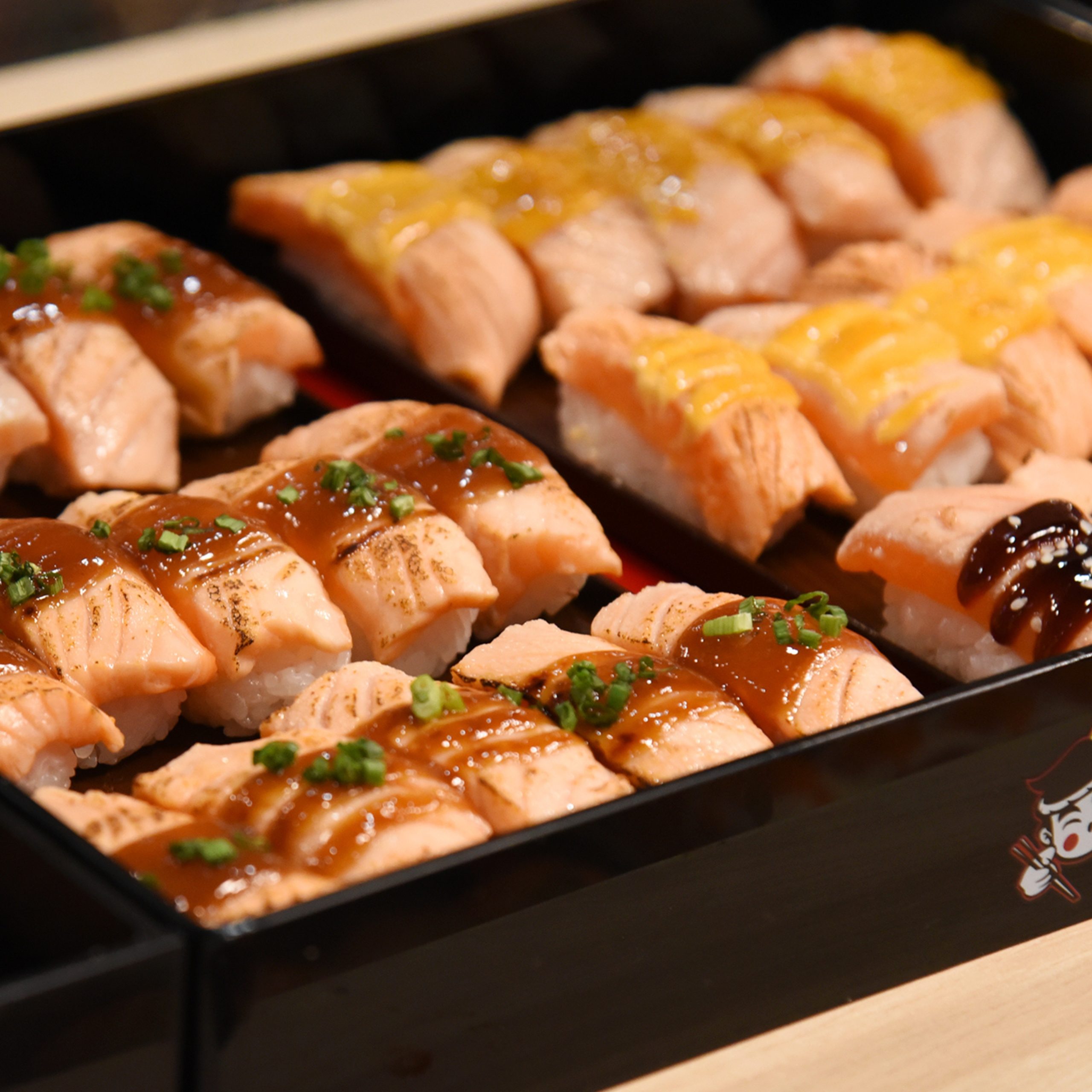 • ไข่หวานบ้านซูชิ ให้บริการ ซูชิ ซาซิมิ แซลม่อน เบิร์น เต้าหู้หวานสลัดปูอัด ไข่หวานแซนวิช มีให้เลือกกว่า 70 เมนู ให้บริการทั้งแบบ Take away และแบบนั่งทานที่ร้าน