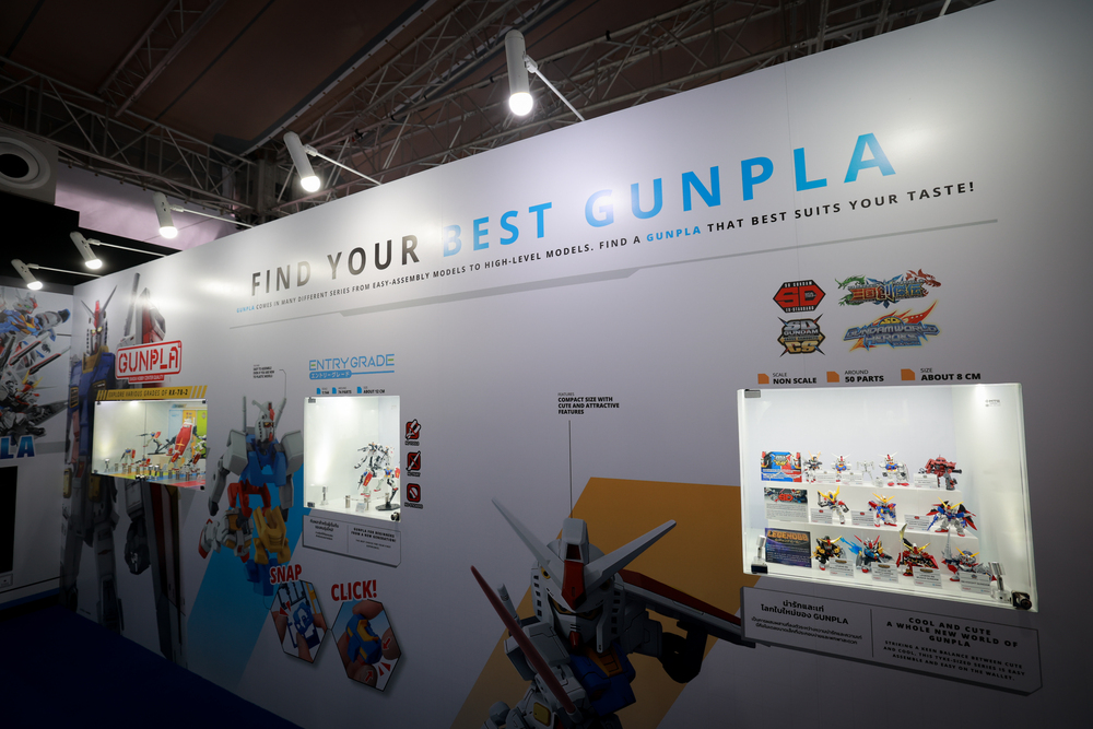 เอาใจสาวกและเหล่านักสะสมตัวจริง กับโมเดลและกันพลา (Gundam plastic model kit) หลากหลายรุ่น พร้อมรุ่นลิมิเต็ด อิดิชัน ที่มีจำหน่ายเฉพาะที่งาน GUNDAM DOCKS at THAILAND เท่านั้น อาทิ SD GUNDAM EX-STANDARD RX-78-2 GUNDAM Ver. GUNDAM docks at THAILAND, HG 1/144 RX-78-2 GUNDAM [BEYOND GLOBAL] Ver. GUNDAM docks at THAILAND, RG 1/144 ν GUNDAM Ver. GUNDAM docks at THAILAND, MG 1/100 RX-78-2 GUNDAM Ver. GUNDAM docks at THAILAND รวมทั้งยังมีสินค้าของที่ระลึกให้เลือกอีกมากมาย ไม่ว่าจะเป็น เสื้อยืด เสื้อเชิ้ตฮาวาย สมุด พวงกุญแจ หรือ สแตนดี้อะคริลิคลายกันดั้มสุดเท่