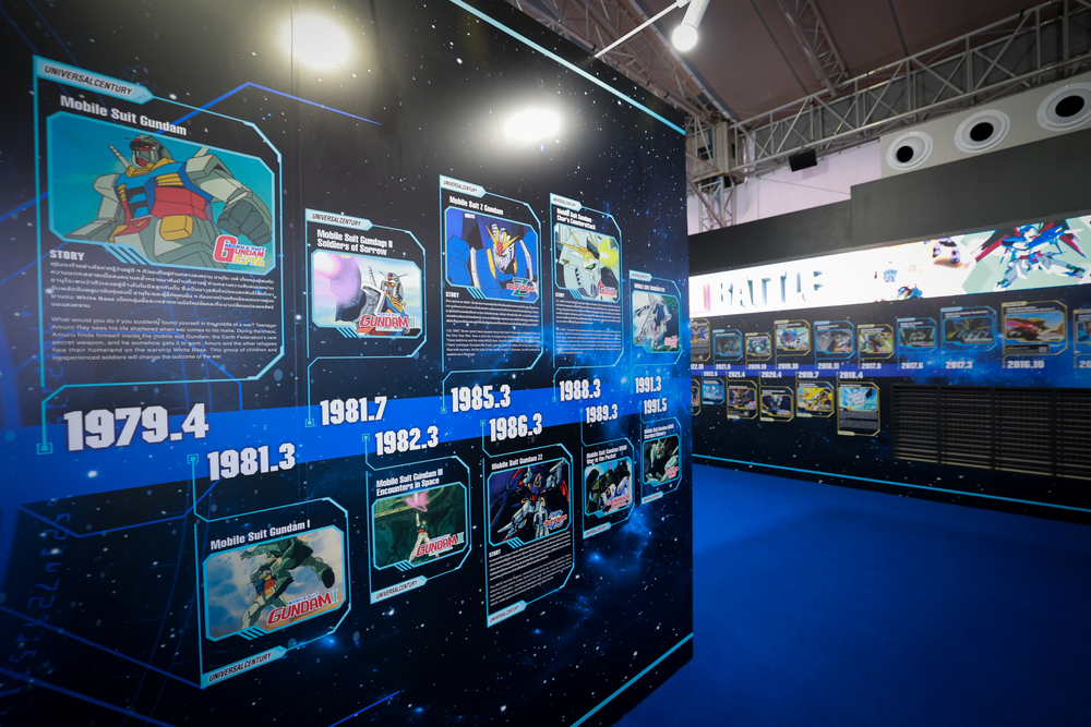 ภายในงานตื่นตาตื่นใจไปกับหุ่นยนต์กันดั้มรุ่น RX-78-2 และรุ่น MS-06S ZAKU II ขนาดใหญ่กว่า 6 เมตร พร้อมเปิดฉายภาพวิดีโอบนจอดิจิทัลอินเตอร์แอ็คทีพขนาดยักษ์ The panOramix หน้าเซ็นทรัลเวิลด์ รวมทั้งยังมีการแสดง แสง สี เสียงสุดอลังการบนหุ่นยนต์กันดั้มทั้ง 2 รุ่น โดยจะจัดแสดงวันละ 3 รอบ ในเวลา 18:30 น. 19:30 น. และ 20:30 น. รอบละ 5 นาที