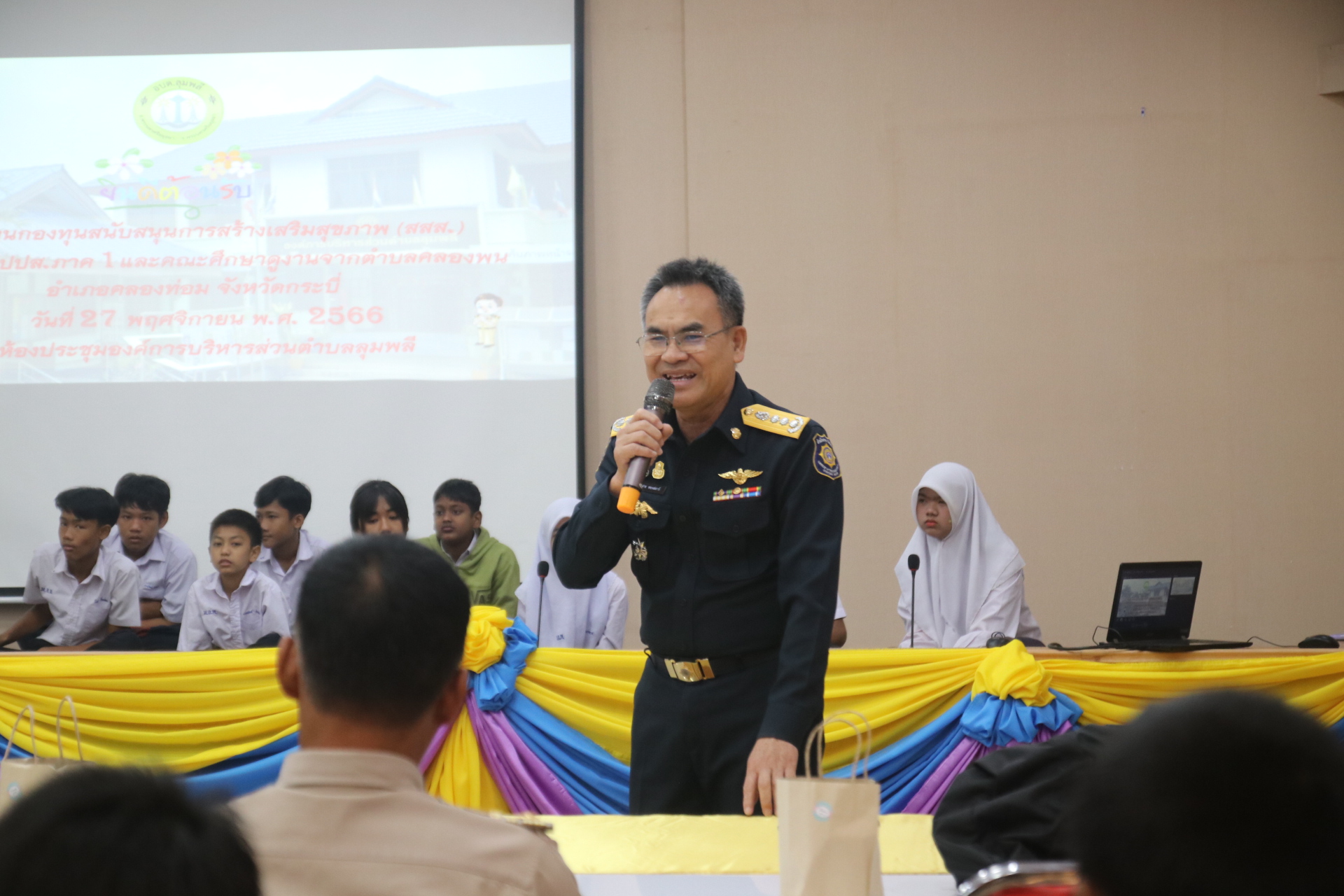 ตลอดกิจกรรมเยาวชนยังได้เห็นถึงการมีส่วนร่วมของผู้ก่อการดีชุมชนคลองมหาสวัสดิ์ เช่น ป้าแจ๋ว “จงดี เศรษฐอำนวย” พี่กบ “วาษิณี เชื้อวงศ์” และชุมชนลุมพลี ทั้ง นายเฟซอล พลีบัตร นายกอบต.ลุมพลี นายประสาร หยงสตาร์ ผอ.ปปส.ภาค 1 นายสงวนศักดิ์ ศรีวัฒนพงงศ์ อดีด ผอ.ปปส.ภาค 1 นายชลอ พาลีคราม กำนันตำบลลุมพลี และนายบรรจง ผาสุก ผอ.โรงเรียนลุมพลีชนูปถัมภ์ ที่ตระหนักถึงปัญหาปัจจัยเสี่ยง ต่างยินดีที่จะใช้ความรู้ ความสามารถ มาร่วมก่อการดีขับเคลื่อนสังคมสุขภาวะ