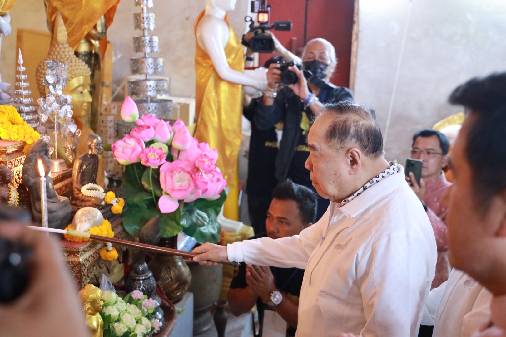 โดย พล.อ.ประวิตร ได้จุดธูปเทียนบูชาพระรัตนตรัย พร้อมถวายเครื่องปัจจัยไทยธรรมแด่พระเถราจารย์นั่งปรก และพระพิธีธรรม และร่วมกรวดน้ำและรับพรจากพระภิกษุสงฆ์