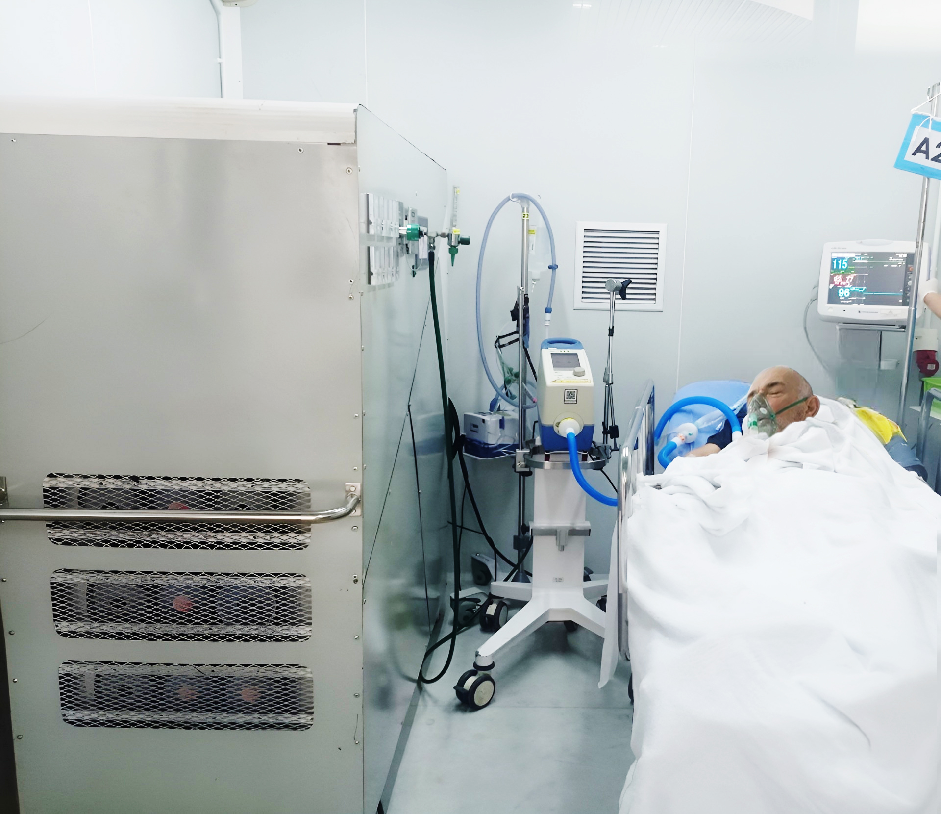 ทำให้ความต้องการใช้ออกซิเจนทางการแพทย์พุ่งสูงขึ้น เกิดปัญหาการขาดแคลนออกซิเจนสำหรับดูแลผู้ป่วยในโรงพยาบาล โดยเฉพาะอย่างยิ่งสำหรับผู้ป่วยขั้นวิกฤตที่ไวรัสทำลายเนื้อเยื้อในปอดจนเหลือน้อยลงมาก ไม่สามารถหายใจด้วยตนเองได้ จำเป็นต้องใช้ ‘เครื่องช่วยหายใจอัตราการไหลสูง’ (High-Flow Nasal Cannula) กับระบบออกซิเจนเหลว ซึ่งจะมีใช้กันใน ‘โรงพยาบาลขนาดใหญ่’ ที่มีจำนวนเพียง 20% เท่านั้นที่สามารถลงทุนสร้างระบบในการติดตั้ง ‘ถังเก็บออกซิเจนเหลว’ เดินท่อก๊าซความดันสูง และต้องพึ่งพาบริษัทผู้ผลิตมาส่งออกซิเจนเหลวให้