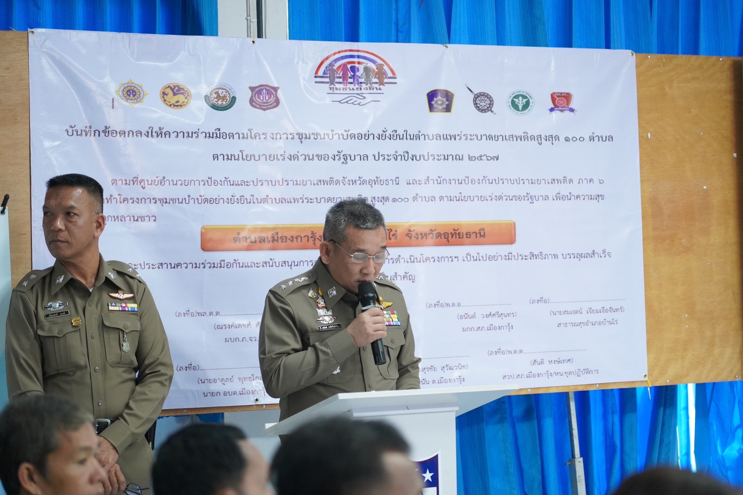 28 ธันวาคม 2566 เวลา 09.00 น. นายชาดา ไทยเศรษฐ์ รัฐมนตรีช่วยว่าการกระทรวงมหาดไทย เป็นประธานในพิธีเปิดโครงการชุมชนบำบัดอย่างยั่งยืนในตำบลแพร่ระบาดยาเสพติดสูงสุด 100 ตำบล ทั่วประเทศ ตามนโยบายเร่งด่วนของรัฐบาล ณ โรงเรียนชุมชนบ้านเมืองการุ้ง อำเภอบ้านไร่ จังหวัดอุทัยธานี