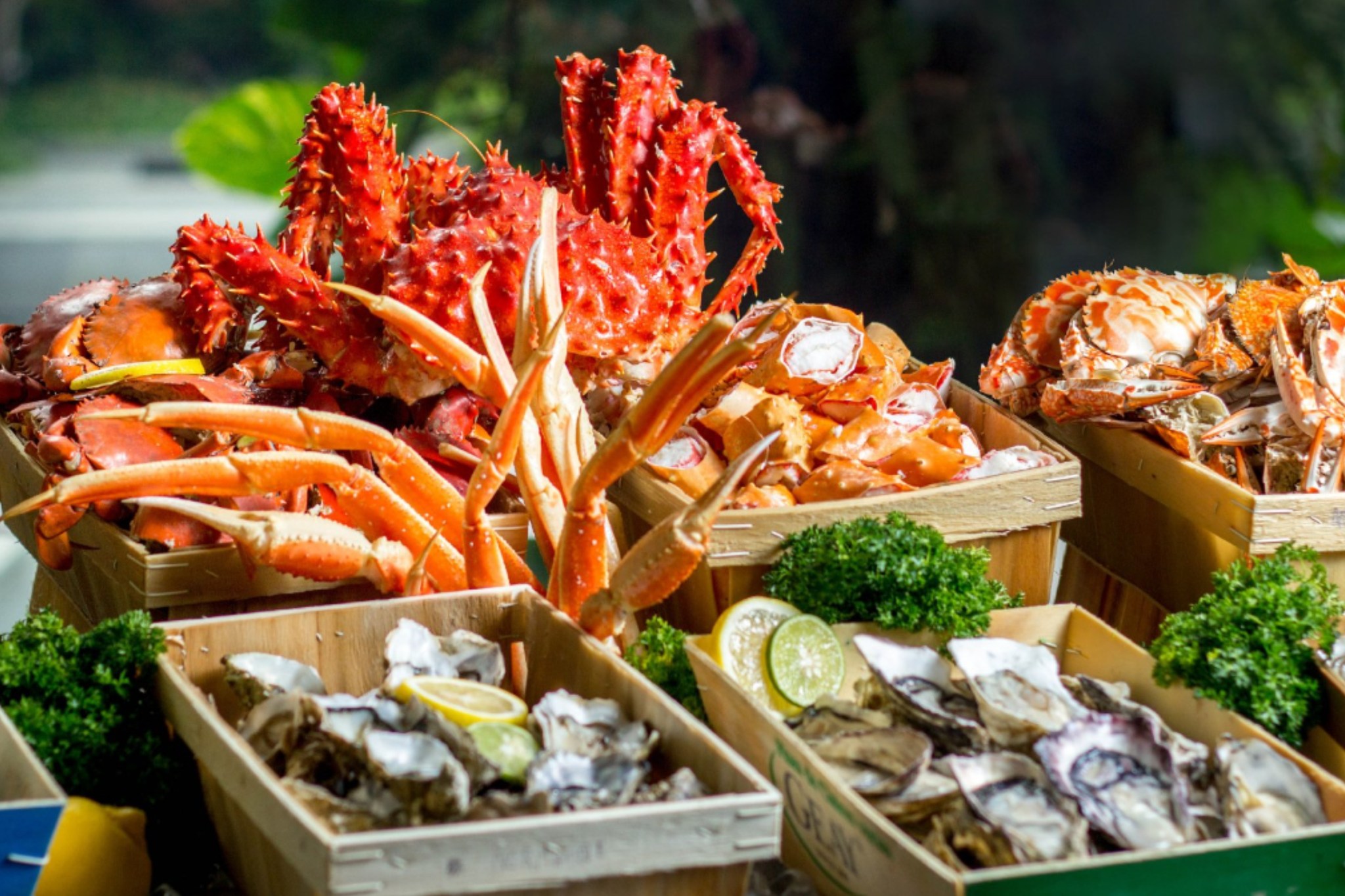 เริ่มต้นด้วย มุมซีฟู้ด ไอส์แลนด์ (Seafood Island) กับอาหารทะเลสดใหม่นานาชนิด ทั้ง กุ้งทะเลและกั้งทะเลตัวโต ปูทะเลหวานฉ่ำ หอยแมลงภู่นิวซีแลนด์ รวมถึงก้ามปูอลาสก้าเนื้อแน่น นำเสิร์ฟเคียงหลากชนิดหอยนางรมในมื้อค่ำ ที่พร้อมเอาใจ ออยส์เตอร์ เลิฟเวอร์ ทุกท่านด้วย 5 สายพันธุ์หอยนางรมจากหลากดินแดน ทั้ง หอยนางรมฟินเดอแคลร์ (Fine de Claire) นอร์มังดี (Normandie) และ สเปซิอาลส์ เจย์ (Speciales Geay) จากฝรั่งเศส หอยนางรมแปซิฟิกรสชาติหวานมันกลมกล่อม