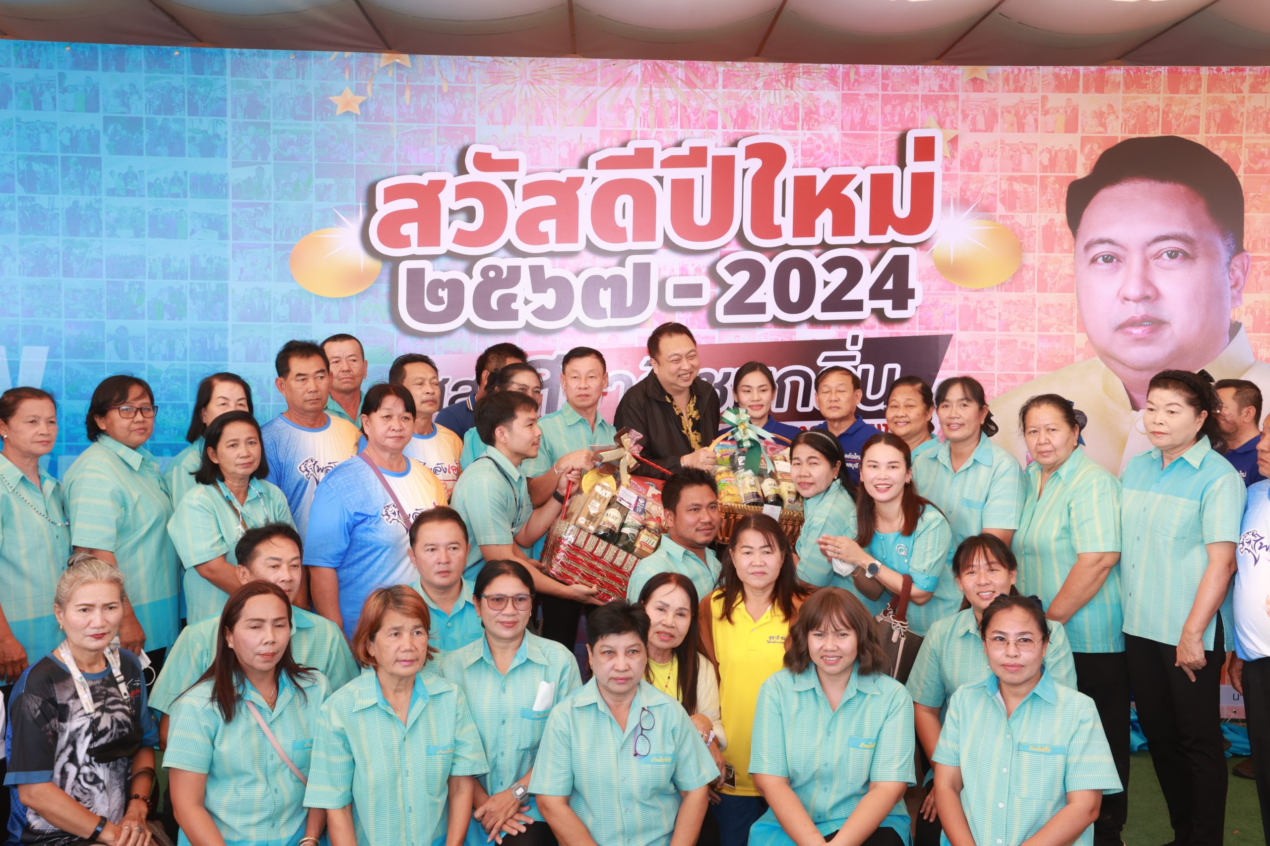 ให้ผู้นำสหภาพแรงงาน องค์กรนายจ้างลูกจ้าง ผู้นำชุมชน ผู้นำท้องถิ่นท้องที่ นักการเมือง ข้าราชการ ตลอดพ่อค้า แม่ค้า พี่น้องประชาชนชาวจังหวัดชลบุรีและพื้นที่ใกล้เคียงได้มาอวยพรและรับพรเนื่องในโอกาสเทศกาลวันขึ้นปีใหม่ พุทธศักราช 2567 ณ สำนักงานพรรครวมไทยสร้างชาติ ถนนพระยาสัจจา ตำบลเสม็ด อำเภอเมืองชลบุรี จังหวัดชลบุรี