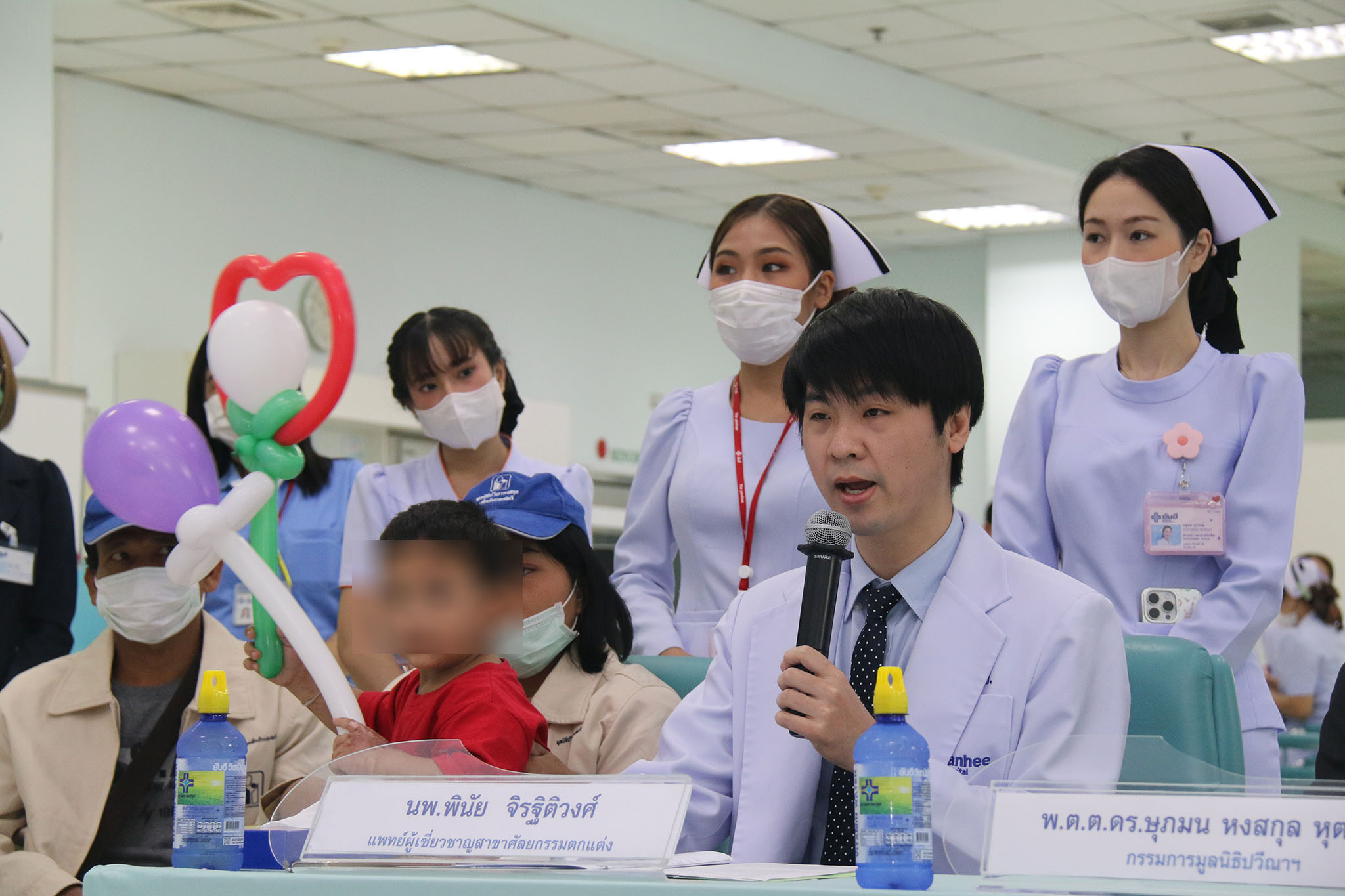 เพราะฉะนั้นในเคสนี้ คุณแม่ไม่ต้องห่วงเรื่องค่าใช้จ่ายอะไรทั้งสิ้น ทางมูลนิธิฯ ตลอดจน ทีมแพทย์โรงพยาบาลยันฮี จะดูแลอย่างเต็มที่จนน้องสามารถใช้ชีวิตได้อย่างปกติครับ” นายแพทย์สุพจน์ กล่าว