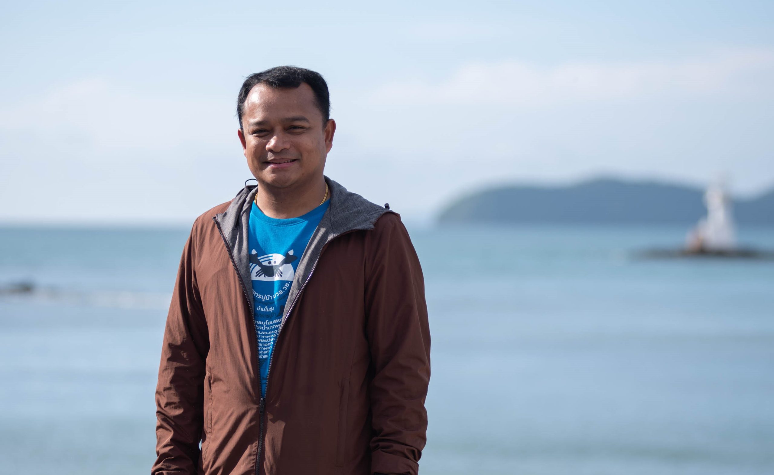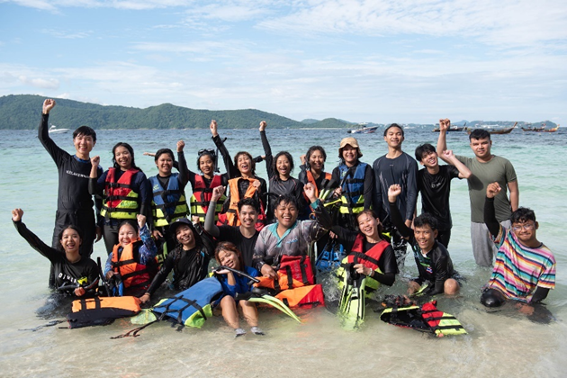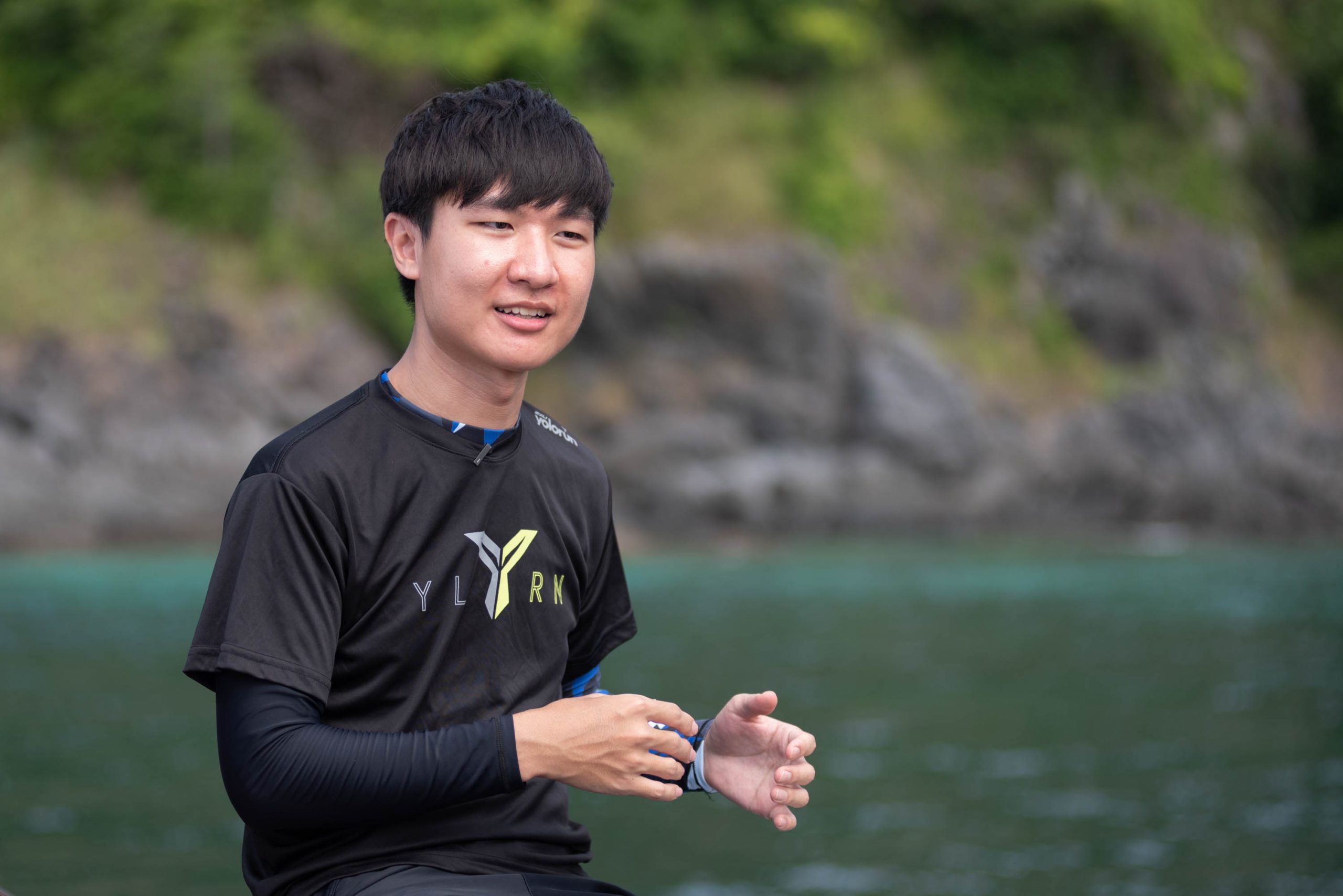 ด้าน นายนพณัฐ พลอยวงศ์ หรือน้องท็อป ที่ปัจจุบันเพิ่งสำเร็จการศึกษาจากคณะเทคโนโลยีสารสนเทศ สถาบันเทคโนโลยีพระจอมเกล้าเจ้าคุณทหารลาดกระบัง กล่าวเสริมว่า “ผมไม่ได้เรียนมาทางนี้ แต่จุดเริ่มต้นคือมีโอกาสได้ไปดำน้ำ รวมถึงเคยได้ไปช่วยเก็บขยะและกู้ซากอวนใต้ทะเลเพื่อฟื้นคืนชีวิตให้ปะการัง ทำให้รู้สึกว่าเราต้องเสริมความรู้เพิ่มเติมเพื่อช่วยอนุรักษ์ท้องทะเลด้วยวิธีที่ถูกต้องมากขึ้น จนมาเจอค่ายนี้ที่ตอบโจทย์เป้าหมายของผม นอกจากช่วงที่เรียนออนไลน์ที่ทำให้ได้เห็นมุมมองของสิ่งแวดล้อมที่ต่างออกไปจากเดิมแล้ว เรายังได้มีโอกาสไปเยี่ยมชมเรือสํารวจ สมุทรศาสตร์ “จักรทอง ทองใหญ่” ที่ภูเก็ต ซึ่งปกติจะใช้สำรวจเก็บตัวอย่างในทะเล โดยเราได้เห็นระบบนำทาง ห้องแล็บภายในเรือ และอุปกรณ์ต่างๆ ของจริงที่เรียกได้ว่าเป็นโอกาสที่หาได้ยากมากๆ ครับ ในฐานะตัวแทนที่ไม่ได้เรียนสายนี้โดยตรง ผมก็อยากชวนเพื่อนๆ ที่มีใจรักทะเล หรือคนที่อยากเห็นอนาคตของทะเลที่ดีกว่าเดิมมาลองเข้าค่ายนี้กัน”