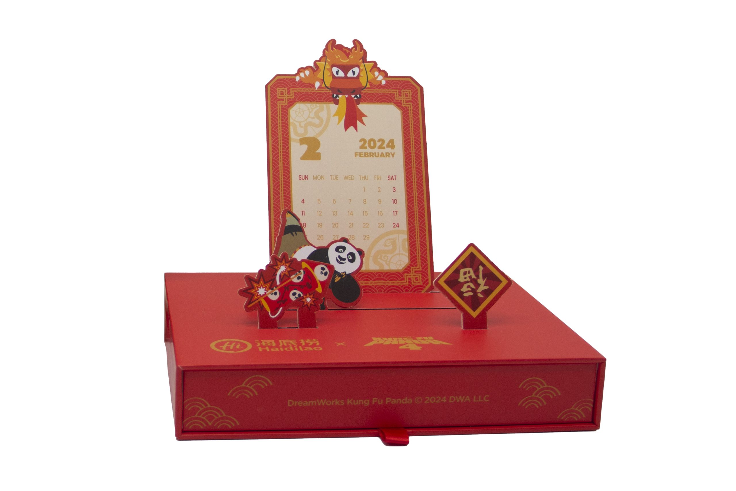 ลูกค้าไหตี่เลาสามารถเลือกซื้อสินค้าคอลเลคชั่นพิเศษฉลองเทศกาลตรุษจีนจาก DreamWorks Animations Kung Fu Panda 4 X Haidilao ทั้ง 8 เซต ประกอบไปด้วย ซองอั่งเปา แก้วน้ำกังฟูแพนด้า กรอบรูป กระเป๋าใส่ส้ม ปฏิทินกังฟูแพนด้าชุดรับประทานหยี่ซัง (Yu Sheng) หมวกแพนด้า และตุ๊กตากังฟูแพนด้า โดยสามารถสั่งซื้อหรือแลกผ่านคะแนนสมาชิกของไหตี่เลาได้