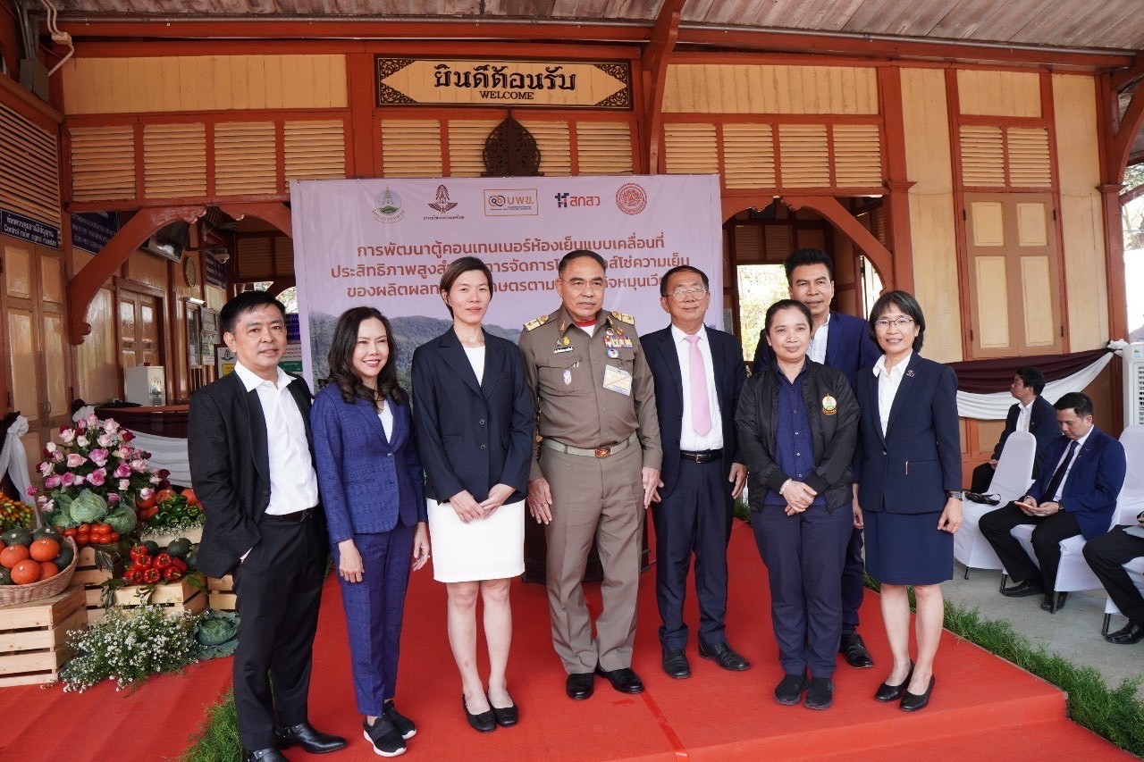 ทั้งนี้ “โครงการพัฒนาตู้คอนเทนเนอร์ห้องเย็นแบบเคลื่อนที่ประสิทธิภาพสูง สำหรับการจัดการโลจิสติกส์โซ่ความเย็นของผลิตผลทางการเกษตรตามเศรษฐกิจหมุนเวียน” ได้รับความร่วมมืออย่างดีจากภาครัฐและเอกชน ได้แก่ การรถไฟแห่งประเทศไทย (หรือ รฟท.) มูลนิธิโครงการหลวง ศูนย์วิจัยนวัตกรรมโลจิสติกส์ มหาวิทยาลัยเทคโนโลยีพระจอมเกล้าธนบุรี สถาบันวิจัยและพัฒนาเทคโนโลยีระบบราง (หรือ สทร.) บริษัท พงศ์เทพ รุ่งเรือง เทรดดิ้ง จำกัด บริษัท เคซี เทรน ทรานสปอร์ต จำกัด และบริษัท ไทยเรล โลจิสติกส์ จำกัด ในการพัฒนายกระดับระบบขนส่งโลจิสติกส์ผลิตผลทางการเกษตรโครงการหลวงให้มีประสิทธิภาพ ผ่านขบวนรถไฟตู้คอนเทนเนอร์ห้องเย็นแบบเคลื่อนที่มีประสิทธิภาพสูง