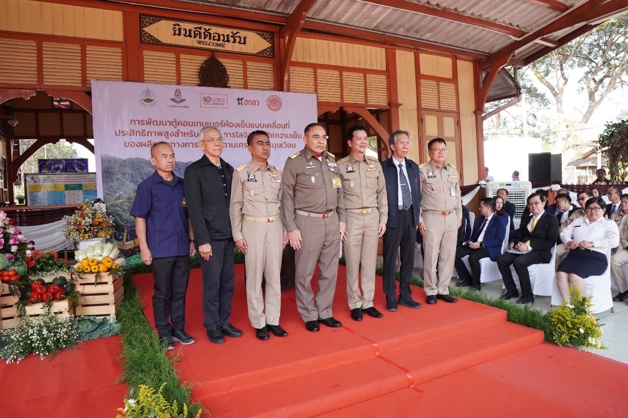 เมื่อวันที่ 26 มกราคม 2567 – สำนักงานคณะกรรมการส่งเสริมวิทยาศาสตร์ วิจัยและนวัตกรรม (สกสว.) ร่วมพัฒนาระบบขนส่งผลผลิตการเกษตรทางรางของไทยผ่าน “โครงการพัฒนาตู้คอนเทนเนอร์ห้องเย็นแบบเคลื่อนที่ประสิทธิภาพสูง สำหรับการจัดการโลจิสติกส์โซ่ความเย็นของผลิตผลทางการเกษตรตามเศรษฐกิจหมุนเวียน” ที่ได้รับการสนับสนุนงบประมาณประจำปี พ.ศ.2566 จากหน่วยบริหารและจัดการทุนด้านการเพิ่มความสามารถในการแข่งขันของประเทศ (บพข.) ภายใต้การจัดสรรงบประมาณจากกองทุนส่งเสริมวิทยาศาสตร์ วิจัยและนวัตกรรม (ววน.)พร้อมร่วมพิธีปล่อยขบวนรถไฟขนส่งผลิตผลโครงการหลวงสู่ภาคใต้ด้วยตู้คอนเทนเนอร์ห้องเย็นแบบเคลื่อนที่ประสิทธิภาพสูง รอบปฐมฤกษ์ ณ สถานีรถไฟลำพูน ตำบลในเมือง อำเภอเมืองลำพูน จังหวัดลำพูน โดยมี พลเอกกัมปนาท รุดดิษฐ์ องคมนตรี และประธานคณะกรรมการบริหาร มูลนิธิโครงการหลวง เป็นประธานในพิธีเปิด