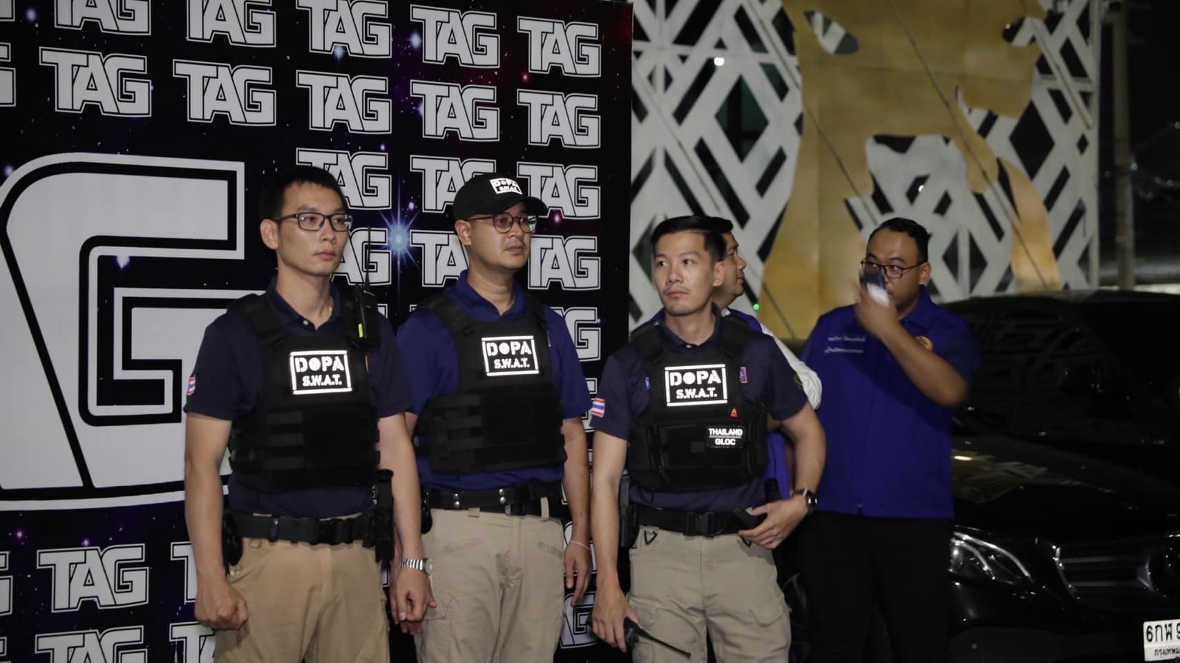 “ปฏิบัติการครั้งนี้ สืบเนื่องจากกรมการปกครองได้รับเรื่องร้องเรียนว่าในพื้นที่ อ.กระทุ่มแบน จ.สมุทรสาคร มีสถานบริการชื่อ “TAG Pub” มีการปล่อยปละละเลยให้นักเที่ยวใช้สารเสพติดภายในสถานบริการ และยังแสดงดนตรีส่งเสียงดังรบกวนชุมชน เปิดให้บริการเกินกว่าเวลาที่กฎหมายกำหนด ไม่เกรงกลัวกฎหมาย และอวดอ้างว่ามีผู้มีอิทธิพลในพื้นที่ให้การสนับสนุน จึงขอให้กรมการปกครองทำการตรวจสอบข้อเท็จจริงในประเด็นดังกล่าว โดยกรมการปกครองได้มอบหมายให้ชุดปฏิบัติการพิเศษกรมปกครองส่งสายลับเข้าสืบสวนข้อเท็จจริงอย่างต่อเนื่อง โดยพบว่าสถานบริการ TAG Pub มีการกระทำผิดจริงตามข้อร้องเรียน ซึ่งในคืนวันที่ 26 มกราคม 2567 ต่อเนื่องเช้าวันที่ 27 มกราคม 2567 ชุดสายลับได้แจ้งไปยังชุดจับกุม เพื่อเปิดปฏิบัติการจู่โจมจับกุมสถานบริการ TAG Pub ทันที โดยเมื่อชุดจับกุมเข้าไปถึงภายในผับ พบนักเที่ยวจำนวนกว่า 300 คน กำลังดื่มด่ำบรรยากาศความสนุกสนานกันอย่างเมามัน และเมื่อเจ้าหน้าที่แสดงตัว นักเที่ยวต่างแตกตื่นโยนยาเสพติดทิ้งเกลื่อนกลาดเต็มพื้น และพยายามหลบหนี กรูกันดันประตูหลบหนีออกไปจำนวนมาก โดยเจ้าพนักงานฝ่ายปกครองได้ควบคุมนักเที่ยวที่เหลือไว้ได้จำนวนหนึ่ง และประกาศให้ทุกคนอยู่ในความสงบ แล้วจึงร่วมกับเจ้าพนักงาน ปปส.ภาค 7 ทำการตรวจหาสารเสพติดในปัสสาวะของนักเที่ยวทุกราย” นายอรรษิษฐ์ฯ กล่าว